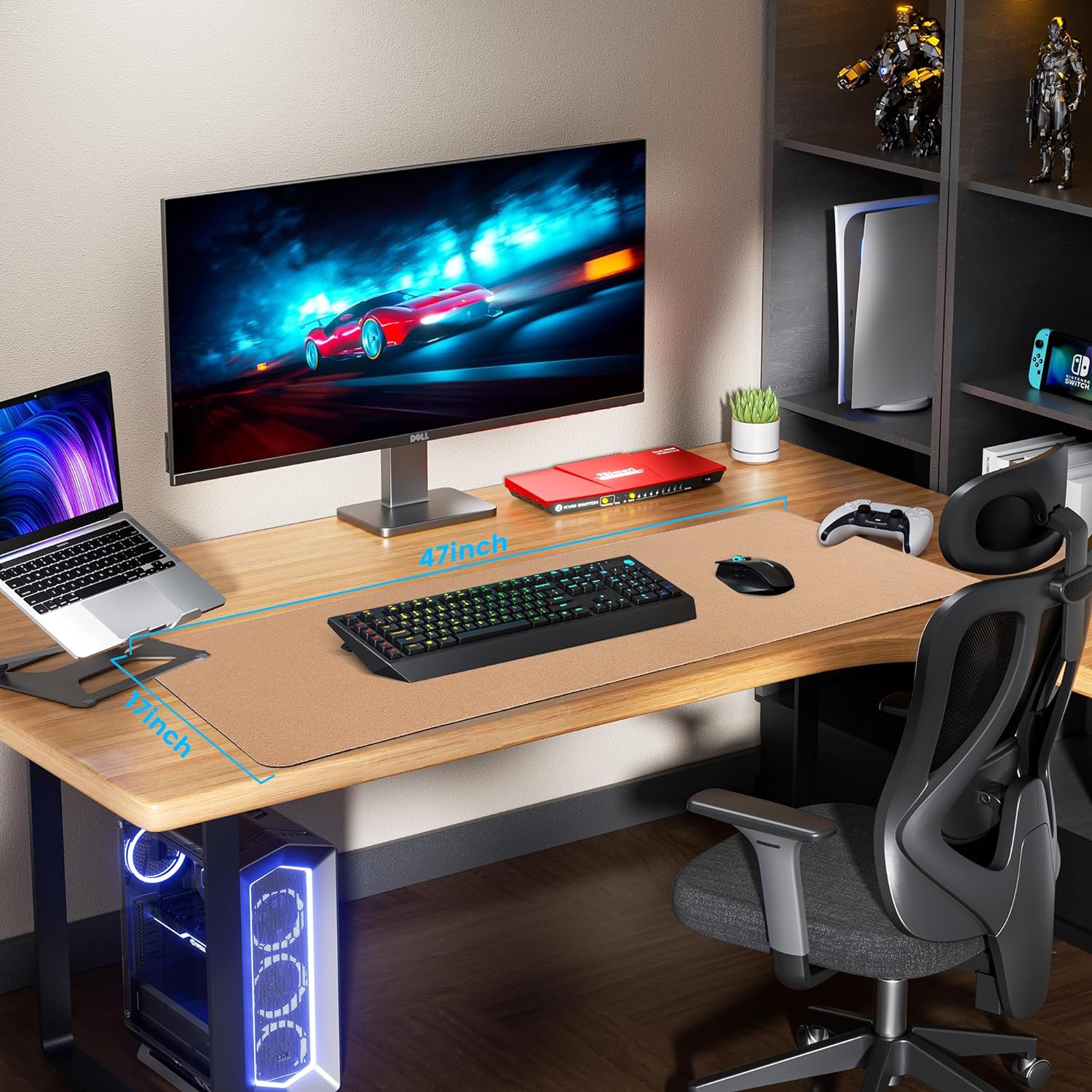 Leather Desk pad Protector, Large Desk mat with Natural Cork & PU Leather,Mouse pad,Non-Slip Office Desk Mat,Waterproof Desk Writing Pad for Office and Home (47in*17in, Apricot)
