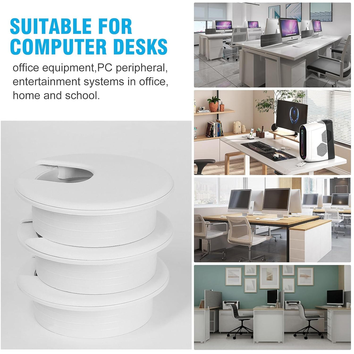 - VERSATILE APPLICATION -- Perfect for managing and concealing cables in desks, workstations, televisions, and entertainment systems. They can accommodate multiple cables and can be used in offices, homes, and workshops. Not only can they neatly manage cables, but also protect them from abrasion due to rough desk edges.