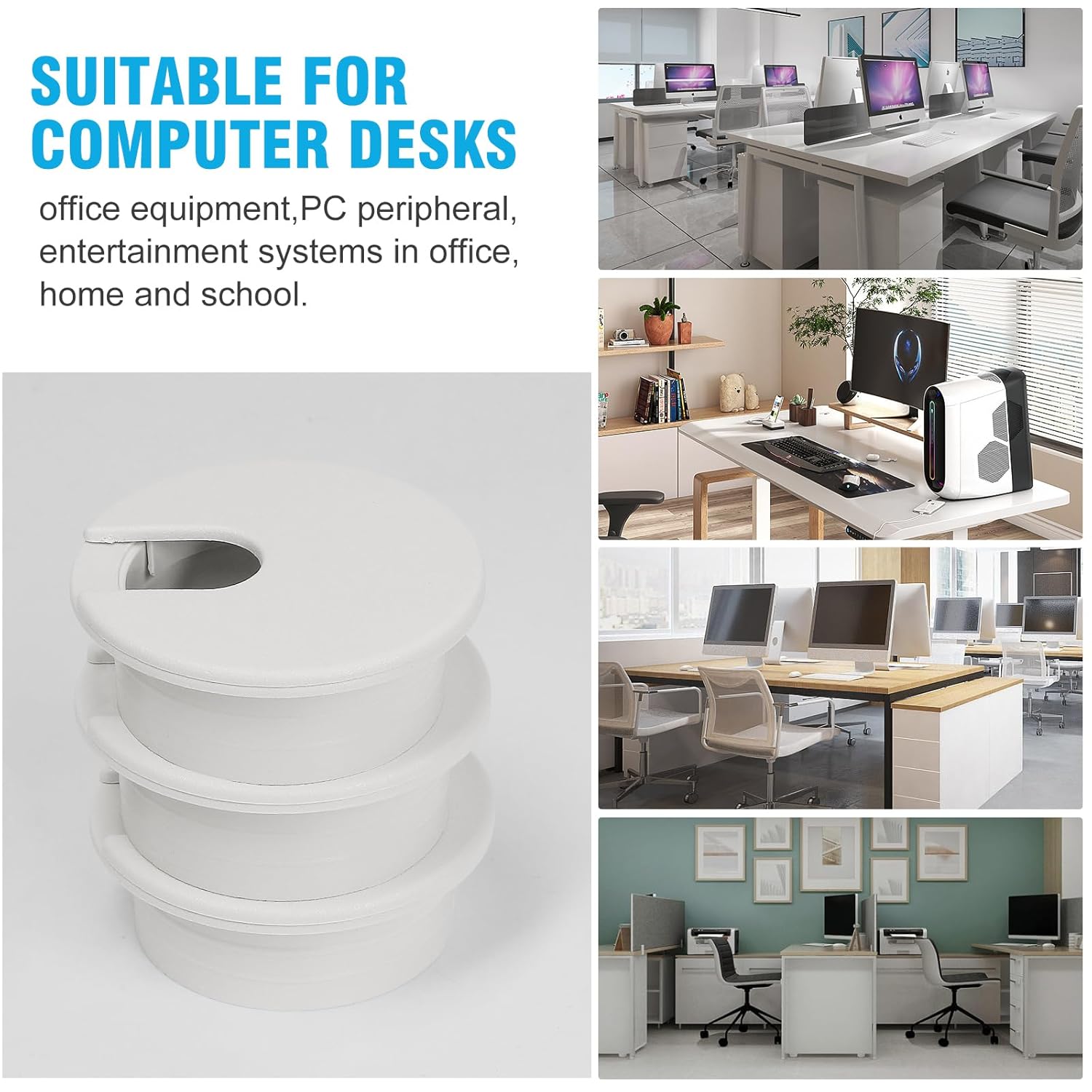 - VERSATILE APPLICATION -- Perfect for managing and concealing cables in desks, workstations, televisions, and entertainment systems. They can accommodate multiple cables and can be used in offices, homes, and workshops. Not only can they neatly manage cables, but also protect them from abrasion due to rough desk edges.
