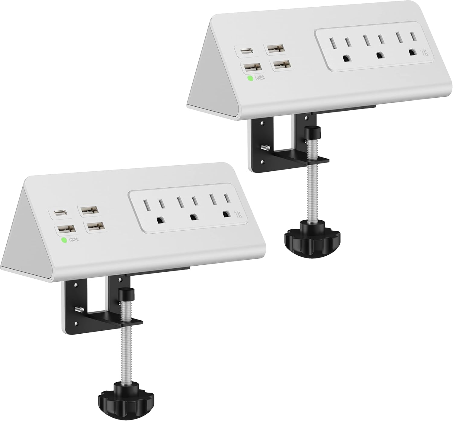 - [Great Charging Solution for Many Occasions] Comes with 4.9 Ft extension cable and additional edge mount clamp, this power socket perfectly fits well with your nightstand/writing table/computer desk or side table. Multiple charging solution for iPad,cell phone,rechargeable lights,labtops and others. One power strip meet all your charging needs.