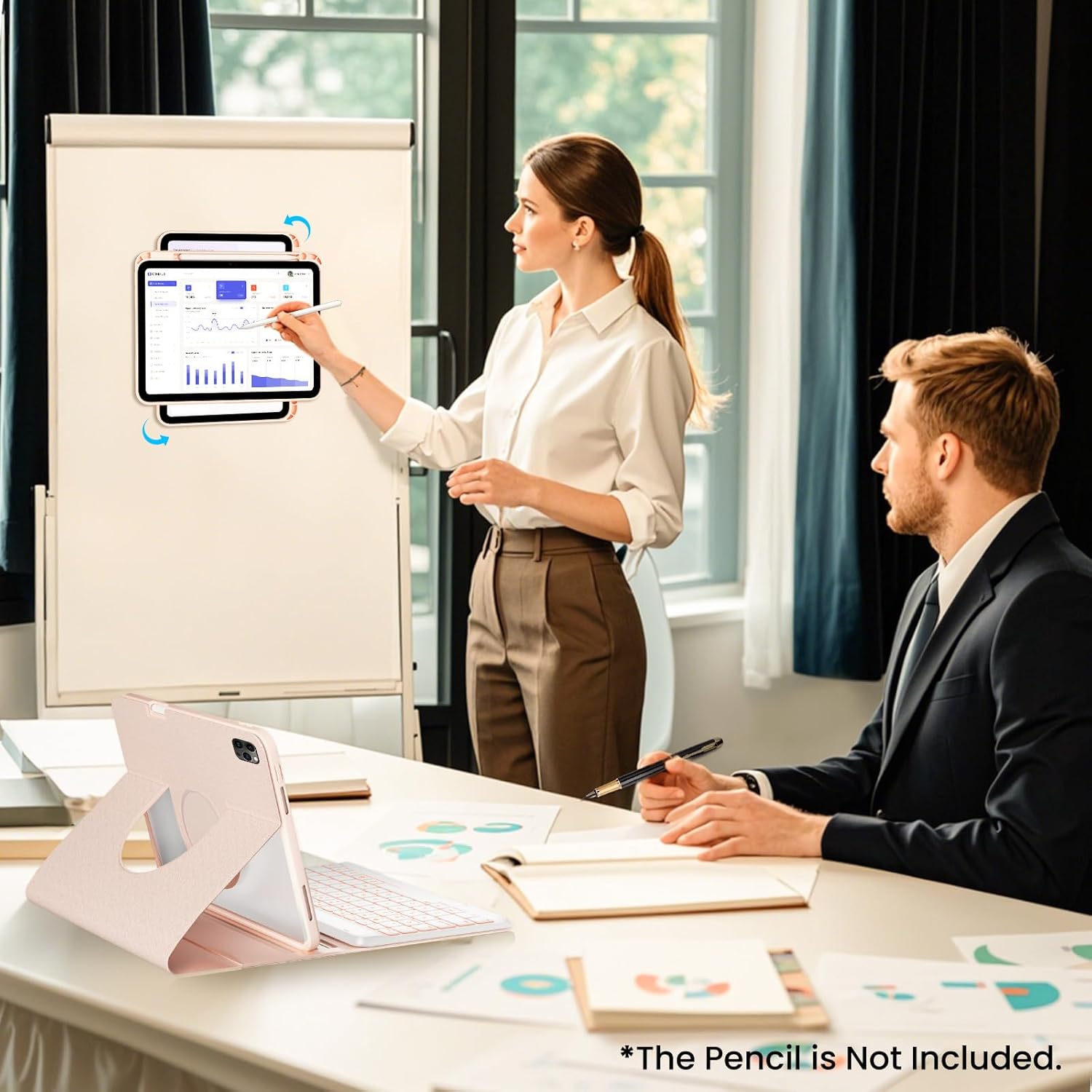- ✅【360° Rotating Magnetic Case】The keyboard case doesn't actually float in mid-air but rather securely attaches to the case. The powerful magnetic feature allows you to attach the case to a fridge or other magnetic surfaces, making it convenient to assist with cooking or other purposes. Provides protection and convenience for easy use of the iPad iPad 10.9/11 inch when you're playing games or working.