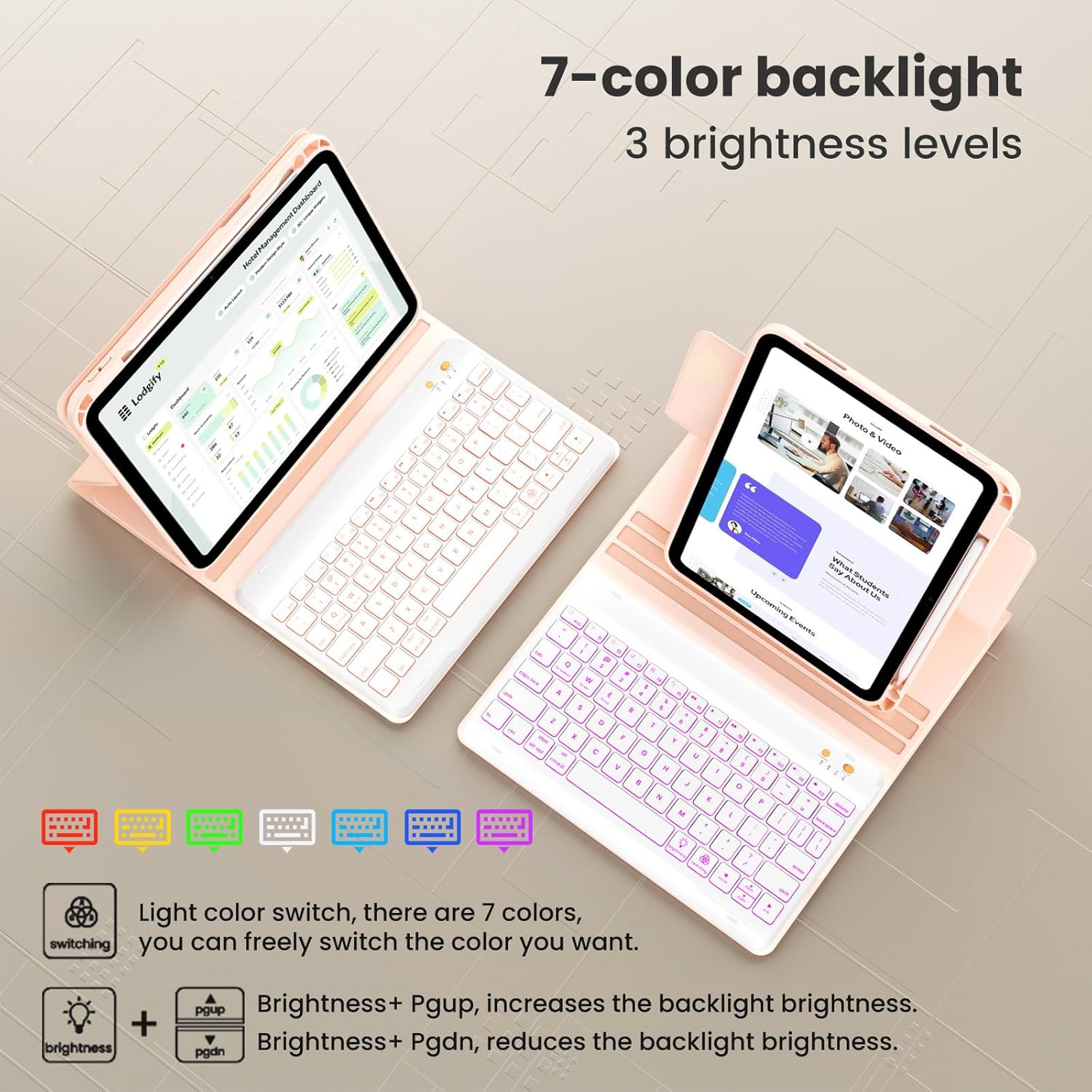 - ✅【Fun&Cool Backlit Keyboard】The magnetic keyboard is separate from the case and attaches via magnets. With 3 levels of brightness and 7 vibrant colors, typing becomes fun and easy in either dark or bright settings. The keyboard for the iPad 10.9/11 inch connects via Bluetooth for easy operation and can be detached when not in use.