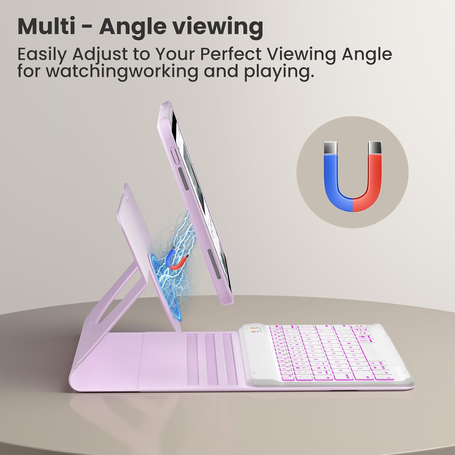 - 【Fun&Cool Backlit Keyboard】The magnetic keyboard is separate from the case and attaches via magnets. With 3 levels of brightness and 7 vibrant colors, typing becomes fun and easy in either dark or bright settings. The keyboard for the iPad 10.9/11 inch connects via Bluetooth for easy operation and can be detached when not in use
