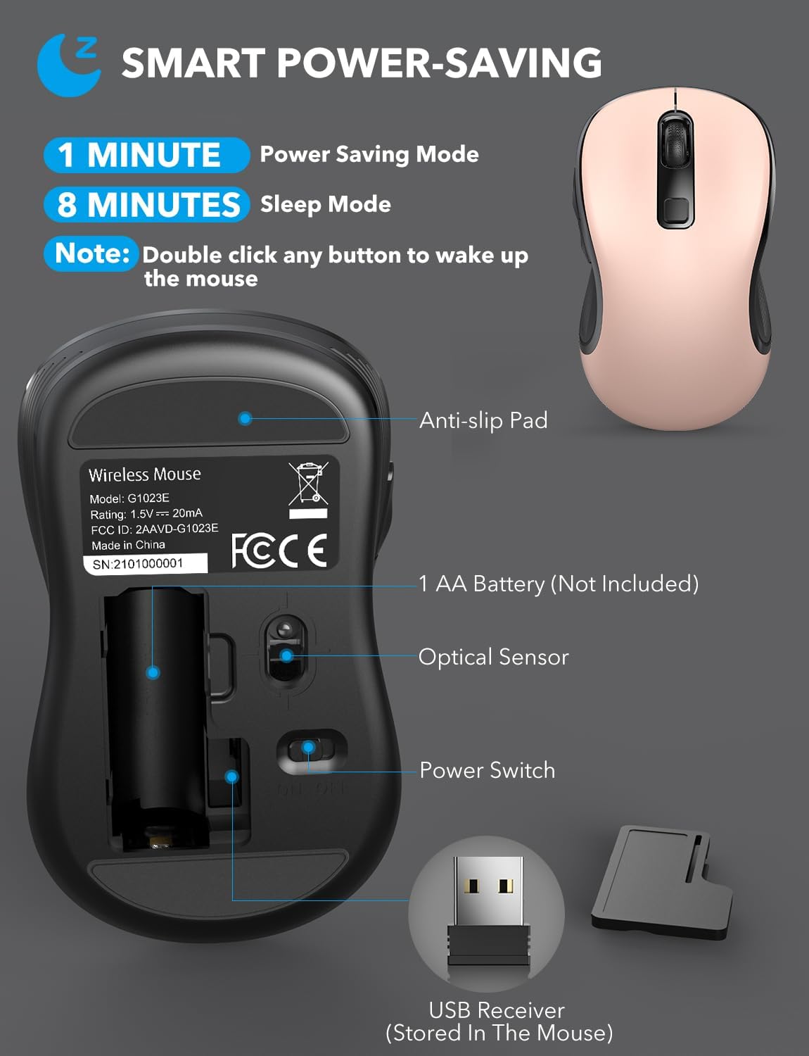 - No Delays, No Dropouts. Plug and play, no drivers need to be installed. NOTE: USB receiver is stored in the back of the mouse. 2.4GHz wireless technology to provide automatic frequency recognition and a stable signal without delay, use distance up to 33 feet.