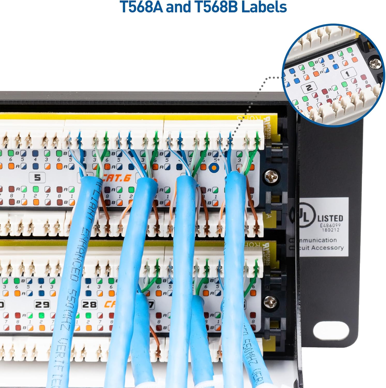- Compliant with UL Fire Safety Standards: This UL listed network patch panel meets UL fire safety requirements (E486099), ensuring safe and reliable operation. The included D-rings and cable ties make cable management easy, keeping your installation neat and organized.