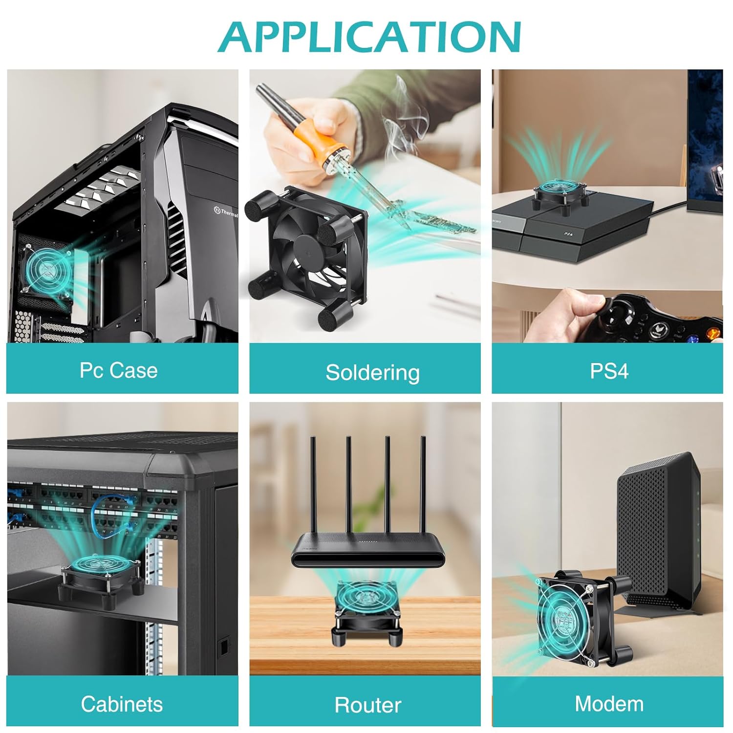 - 80mm Fan: Dual Ball 50000H high performance cooling. Small plug in fan Enjoy a peaceful environment with our quiet fan. Operates quietly while keeping your devices cool