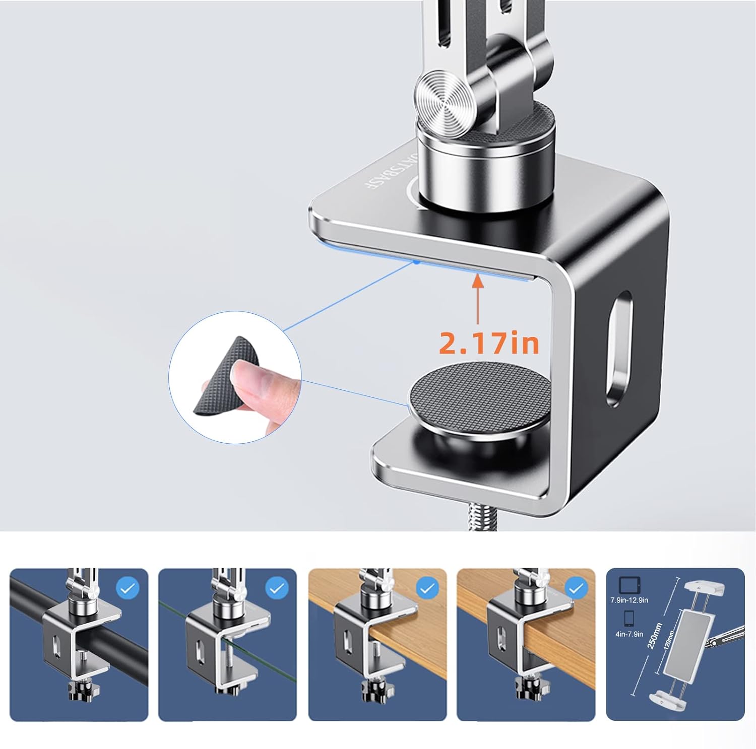 - High Compatibility: Our Gooseneck Phone and Tablet Holder is compatible with 4~12.9 inch devices, Such as iPhones, iPads, and other smartphones and tablets