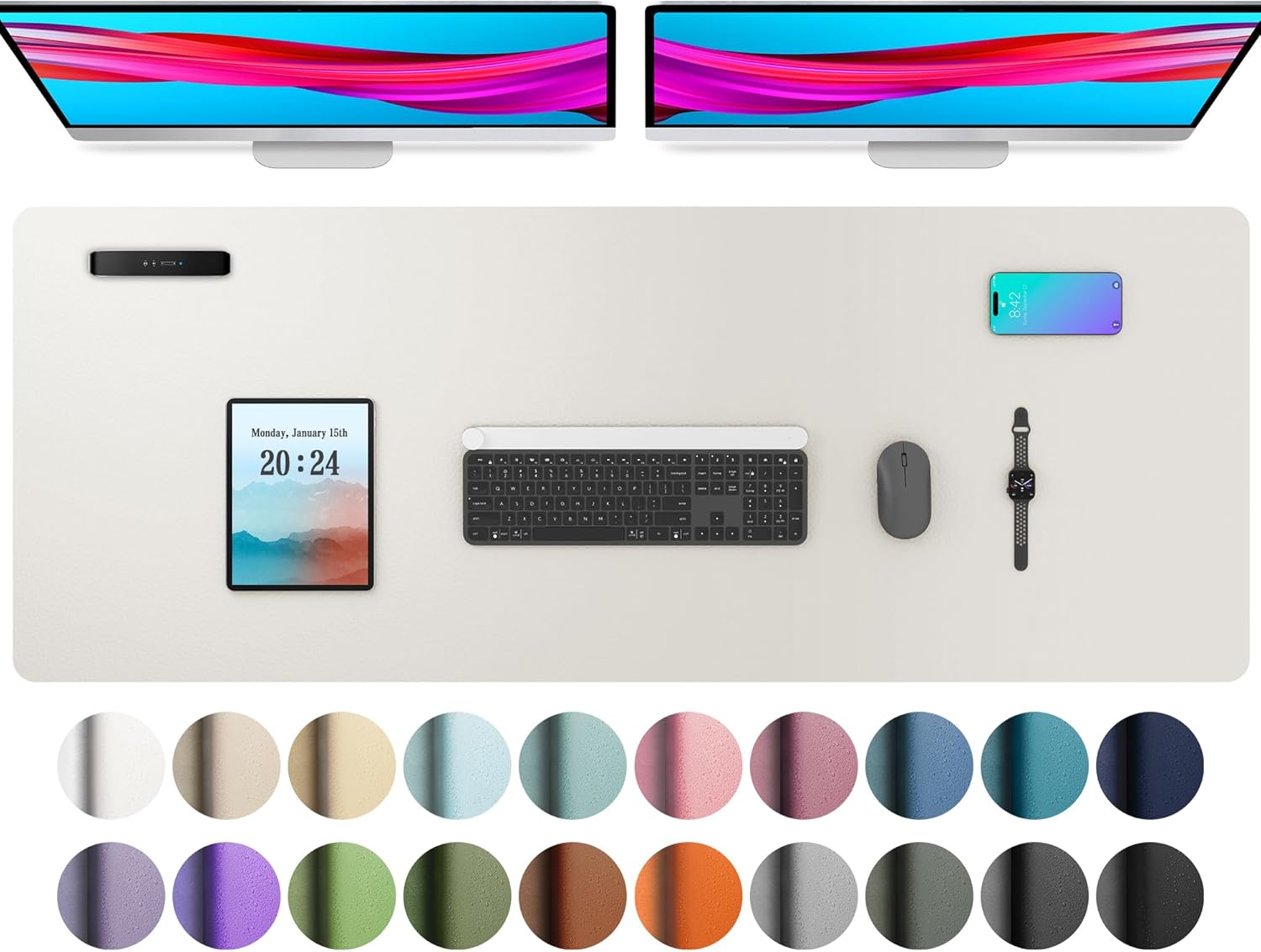 Aothia Leather Desk Pad Protector, Mouse Pad,Office Desk Mat, Non-Slip PU Leather Desk Blotter, Laptop Desk Pad, Waterproof Desk Writing Pad for Office and Home (48"x17", Off-White)