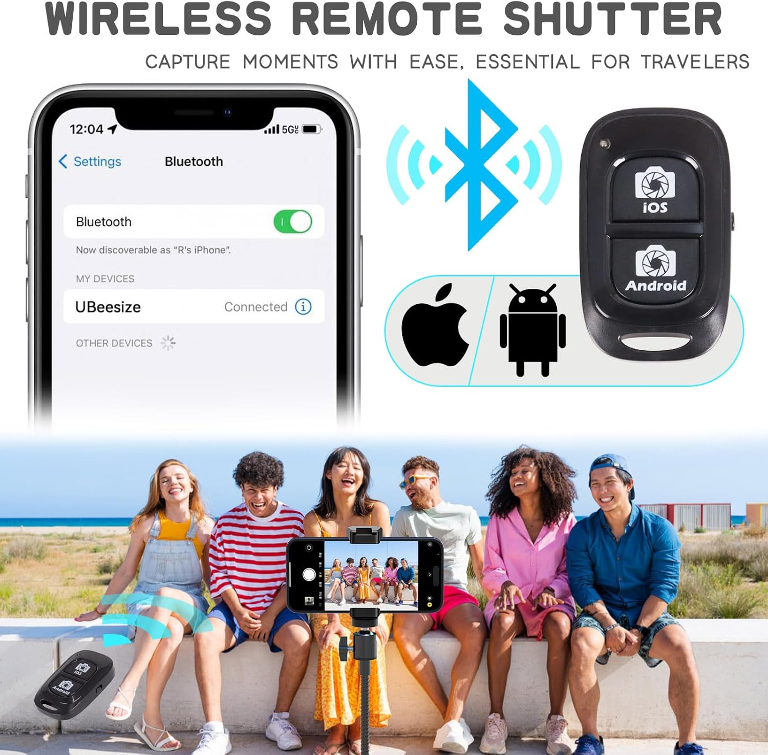 - 【Enhanced Versatility】The package includes an enhanced phone clip featuring a cold shoe mount designed for microphones and LED lights. Additionally, a wireless Bluetooth remote shutter is provided, offering an impressive range of up to 30 feet. This remote shutter is compatible with a diverse array of smartphones, ensuring seamless connectivity.