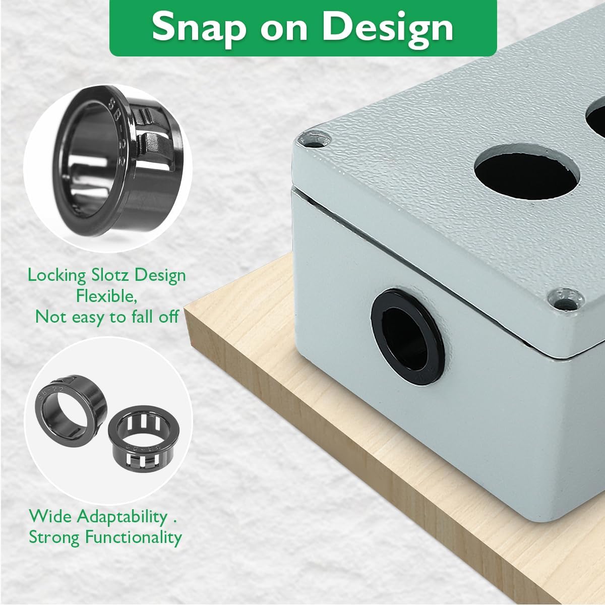 - VERSATILE APPLICATION: Snaps into electrical outlet box, switch box metallic box or other enclosure; Our wire bushing provide insulation and mechanical protection for electrical and telecommunication cables in most residential, industrial, automotive equipment and machinery
