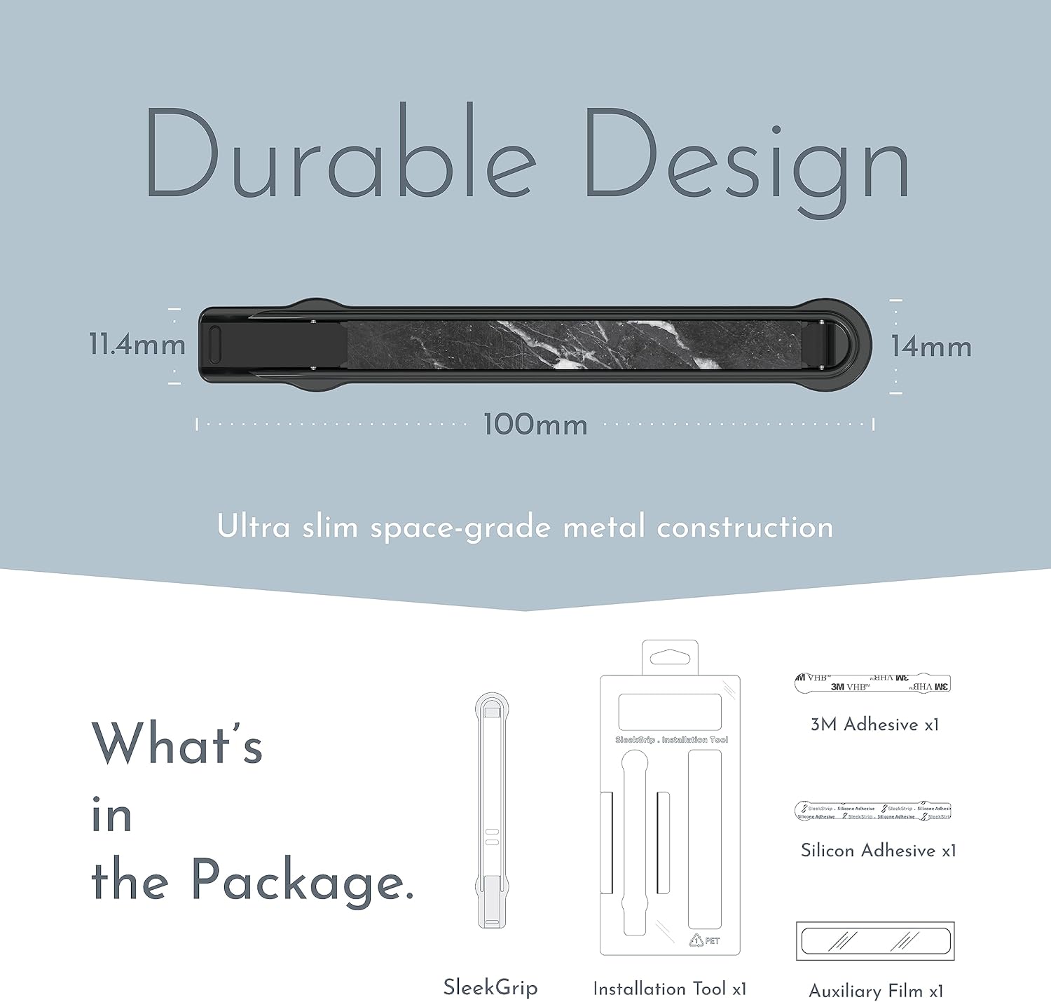 - ✓ Lightweight and Long-lasting: SleekGrip is made of space-grade steel and zinc alloy base. Weighing at only 3.5g, SleekGrip is highly durable and light for everyday usage.