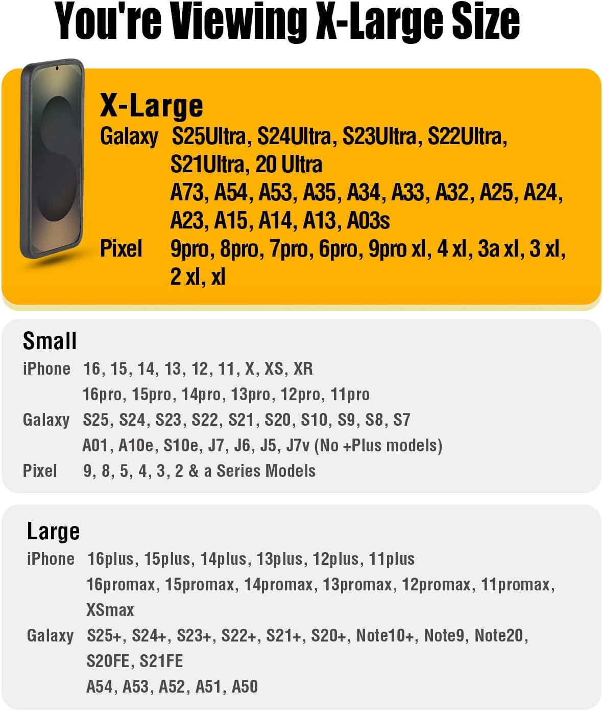 - For all Samsung Ultra 5G, Galaxy Note and A series models, large Google pixel XL models. Holster is big enough to fit the phone with other protective case on.