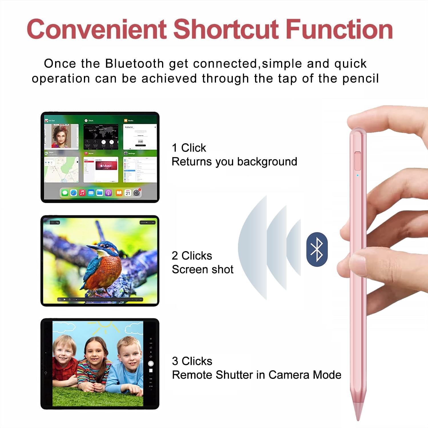 - 【Palm Rejection&Magnetic Adsorption Design】-The apple pen with palm rejection technology ,You can rest your palm on the screen and write like it was paper, Magnetic design protects the apple pen from rolling and dropping, makes the active stylus pencil more easy to carry and organize.