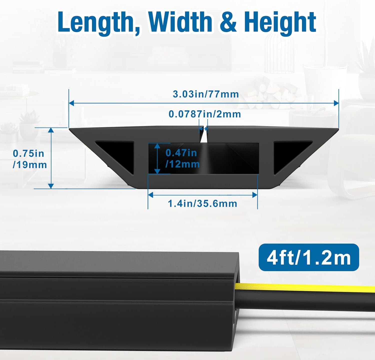 - CABLE PROTECTOR FLOOR-- 4 feet long, 0.78" height, 3.15" external width. Extension cord floor cover is long and wide to cover the cables, wires or cords well. Please check the size of your cables or cords first before placing an order.