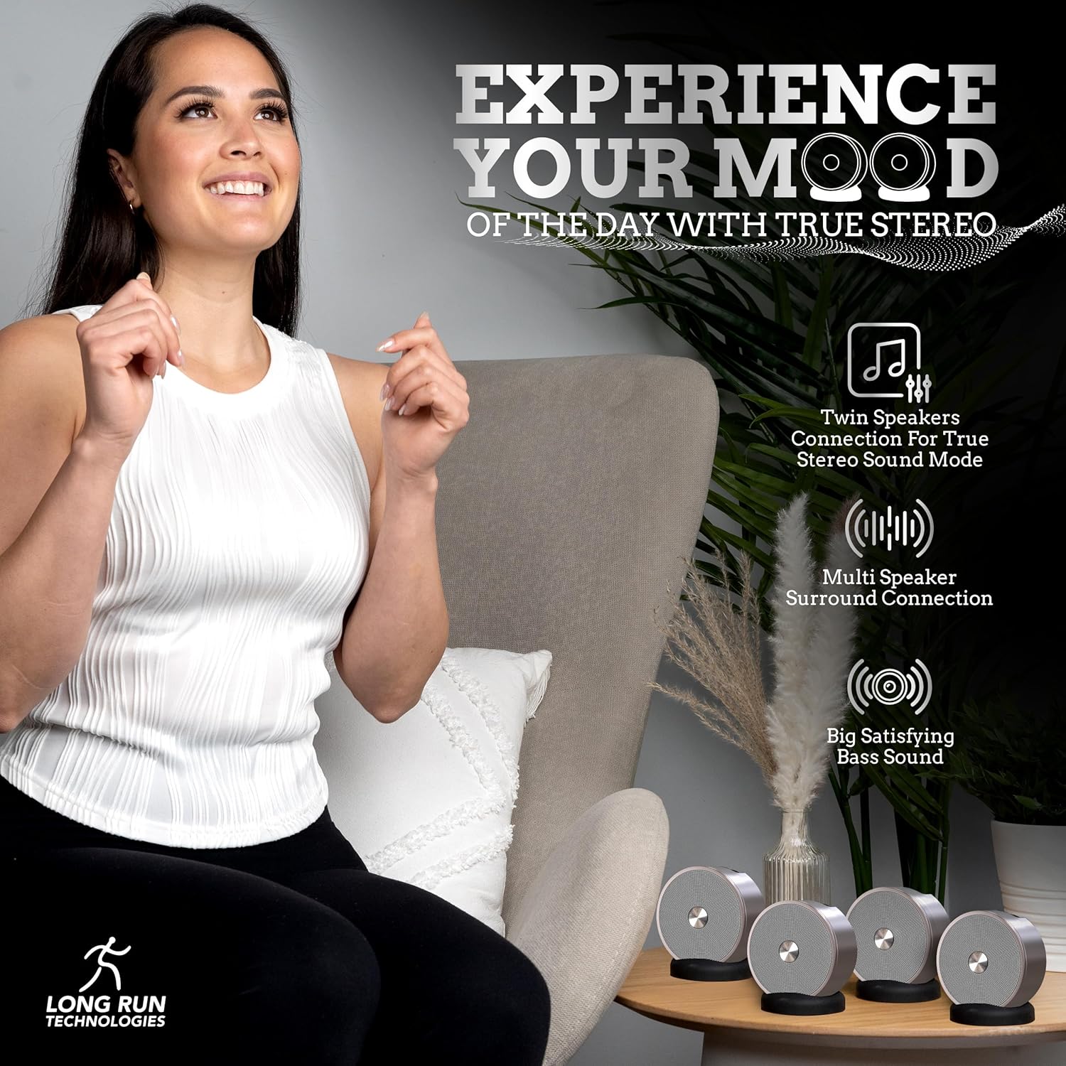 - Thanks to our NEWLY UPGRADED TECHNOLOGY, with the simple press of a button you can now PAIR an UNLIMITED NUMBER of these speakers together! Go with 2, 4, 6, 8 of them, or any number you desire. Get complete 360 surround sound in your favorite room, or separate the speakers into multiple rooms in your home. Upstairs or downstairs, these speakers will stay connected, delivering your music, wherever you want it. To pair only 2 speakers together, connect a single speaker to your Bluetooth device 1st. Next turn the 2nd speaker on and long press the "Phone/Play/Pause" button until you hear an audio prompt indicating that the 2nd speaker has joined in. Add multiple speakers in the same way.