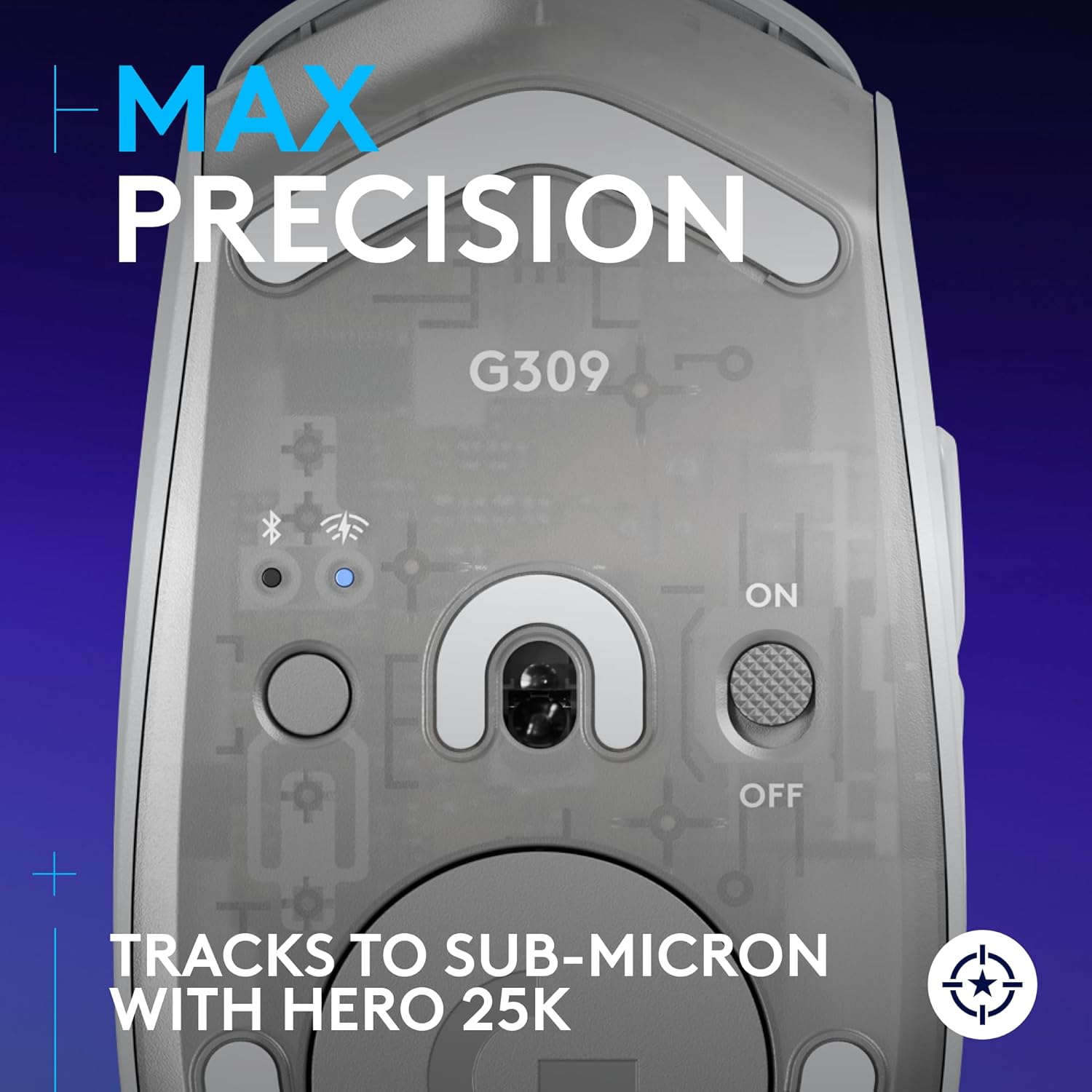 Logitech G309 Lightspeed Wireless Gaming Mouse, Lightweight, LIGHTFORCE Switches, Hero 25K Sensor, 300+ hr Battery, 6 Programmable Buttons, PC & Mac - White