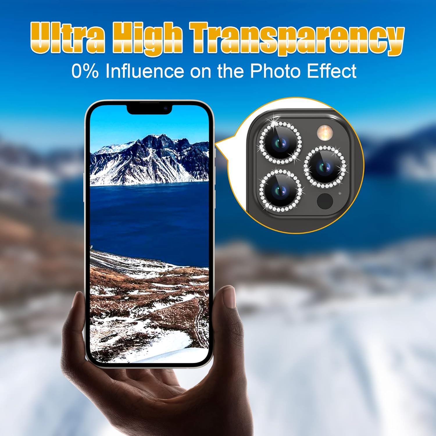 - ⭕[Two Bling Effects] There are 3 bling diamond rings and 3 bling glitter rings in the package. Free to match according to your own personal preferences. These rings glass are optical grade, protect your iPhone 13 Pro / 13 Pro Max camera lens from damage and scratches and has no effect on taking photos. Fully high transmittance sapphire glass with AR anti-reflection function: Camera anti-fall protection and Bling Bling Effect and Fully restored image quality.