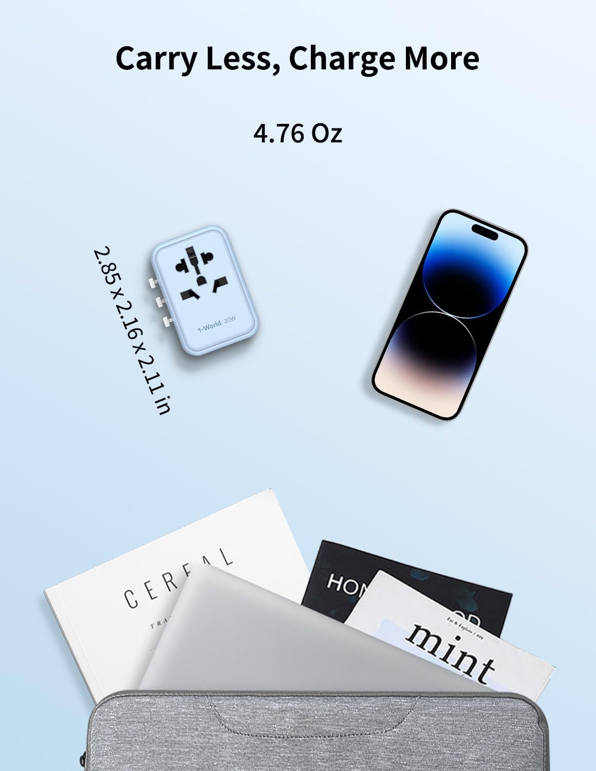 - PD 20W Fast Charging: This international adapter is equipped with 2 USB-A ports, 1 USB-C port and 1 AC outlet (1250W Max in US) and supports PD3.0 & QC3.0 fast charging. The USB-C PD ports can even reach an incredible high speed of 15W. It is ideal for your USB devices, especially laptop, smartphone, tablet, power bank, camera, Vision pro, etc