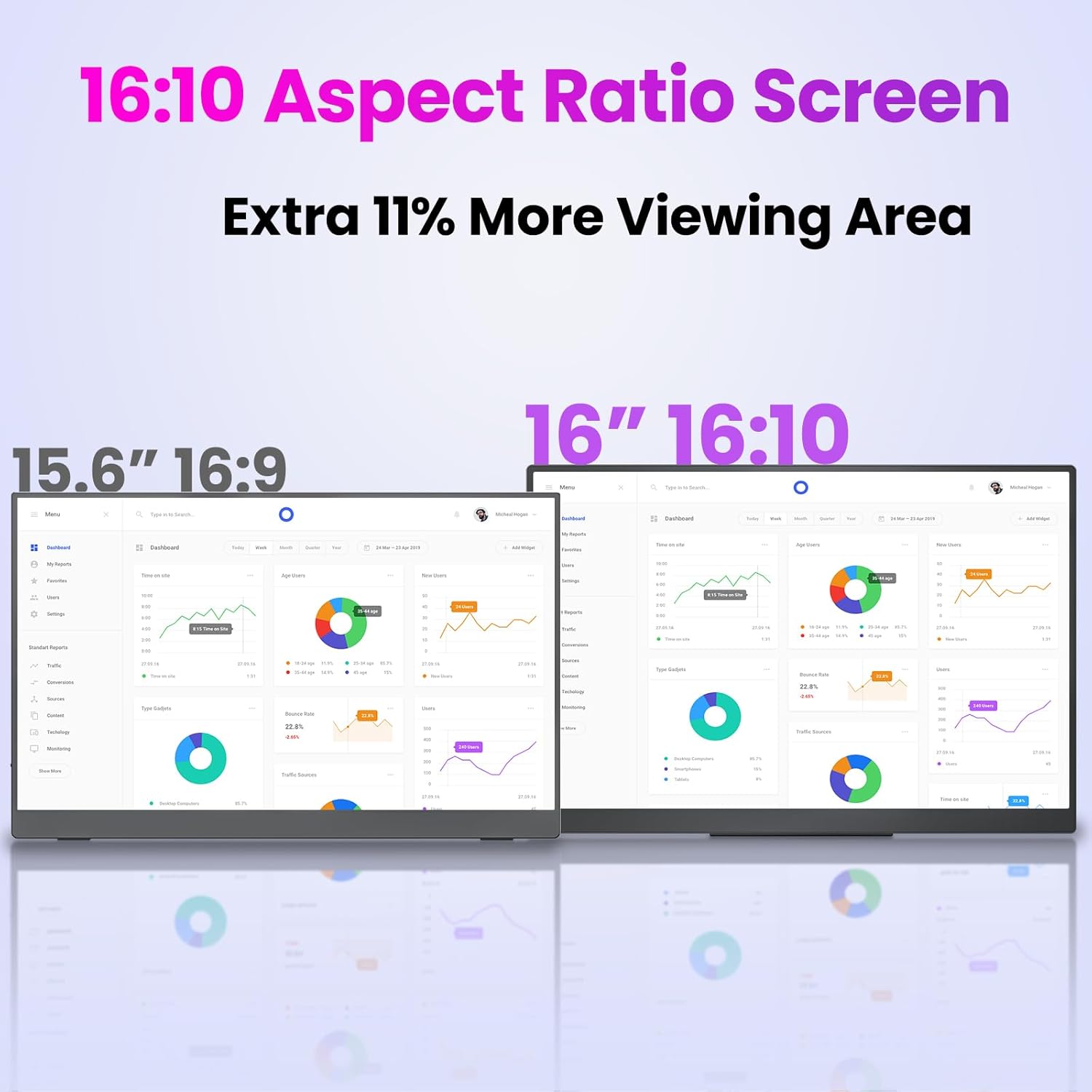 - Ultra-Slim, Portable, Plug-and-Play: Weighing only 1.8 lb (monitor only) and 0.55 inch in thickness, the 16 inch 2K portable monitor can easily be stowed in your carry-on bag, whether you're traveling, touring or moving. No driver or software needed! Just Plug-and-Play