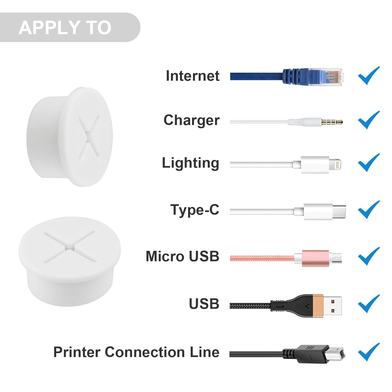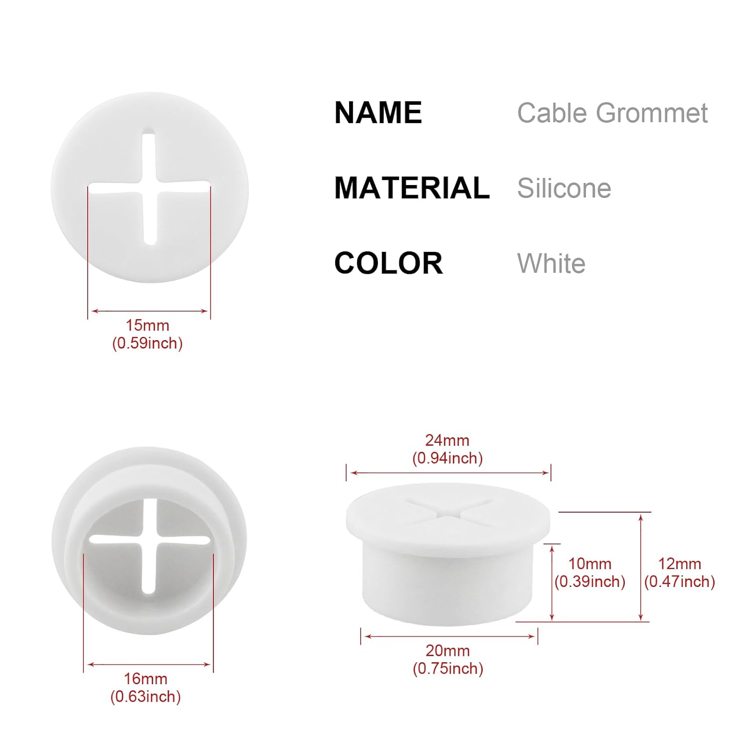 - 【Package Content】You will receive 12pcswhite desk grommets in the package,The grommets are made of sturdy silicone Rubber,and suitable for 3/4inch (20mm) holes.Durable and Corrosion Resistance.
