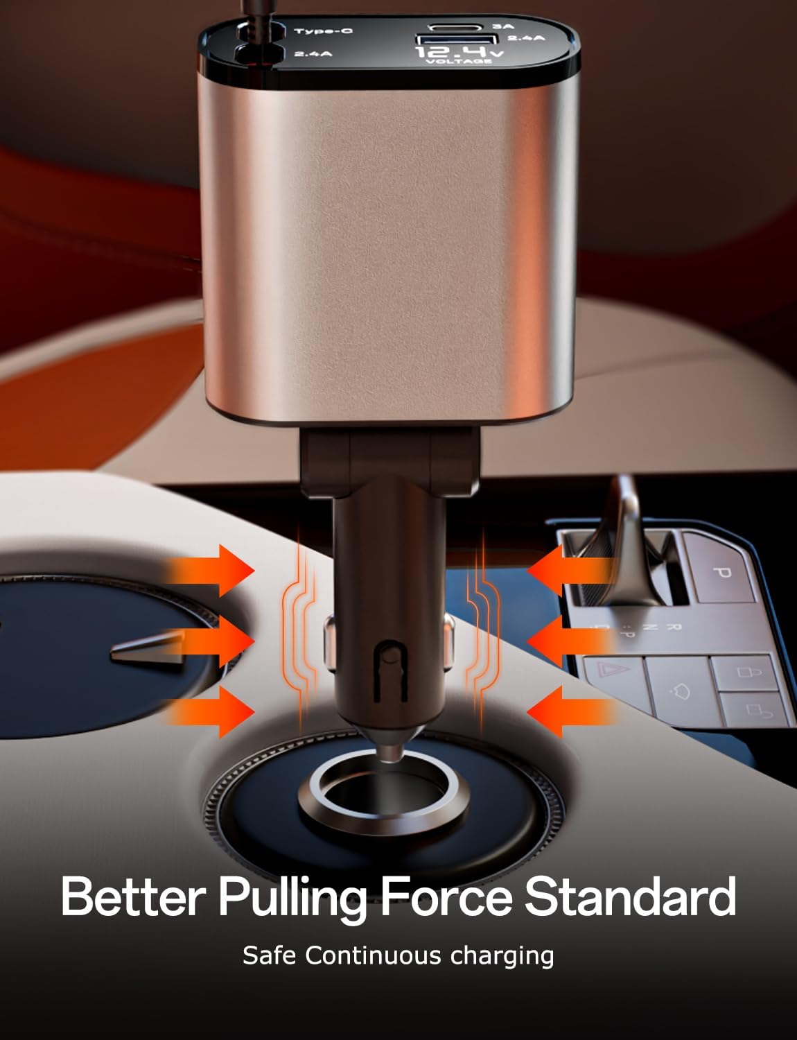 - 【Widely Compatible】The retractable car charger is suitable for 12V-24V mainstream cars, the plug is firm and won't pop out even when driving on bumpy roads. Voltage digital display can show real-time voltage, convenient for users to check the car battery status.