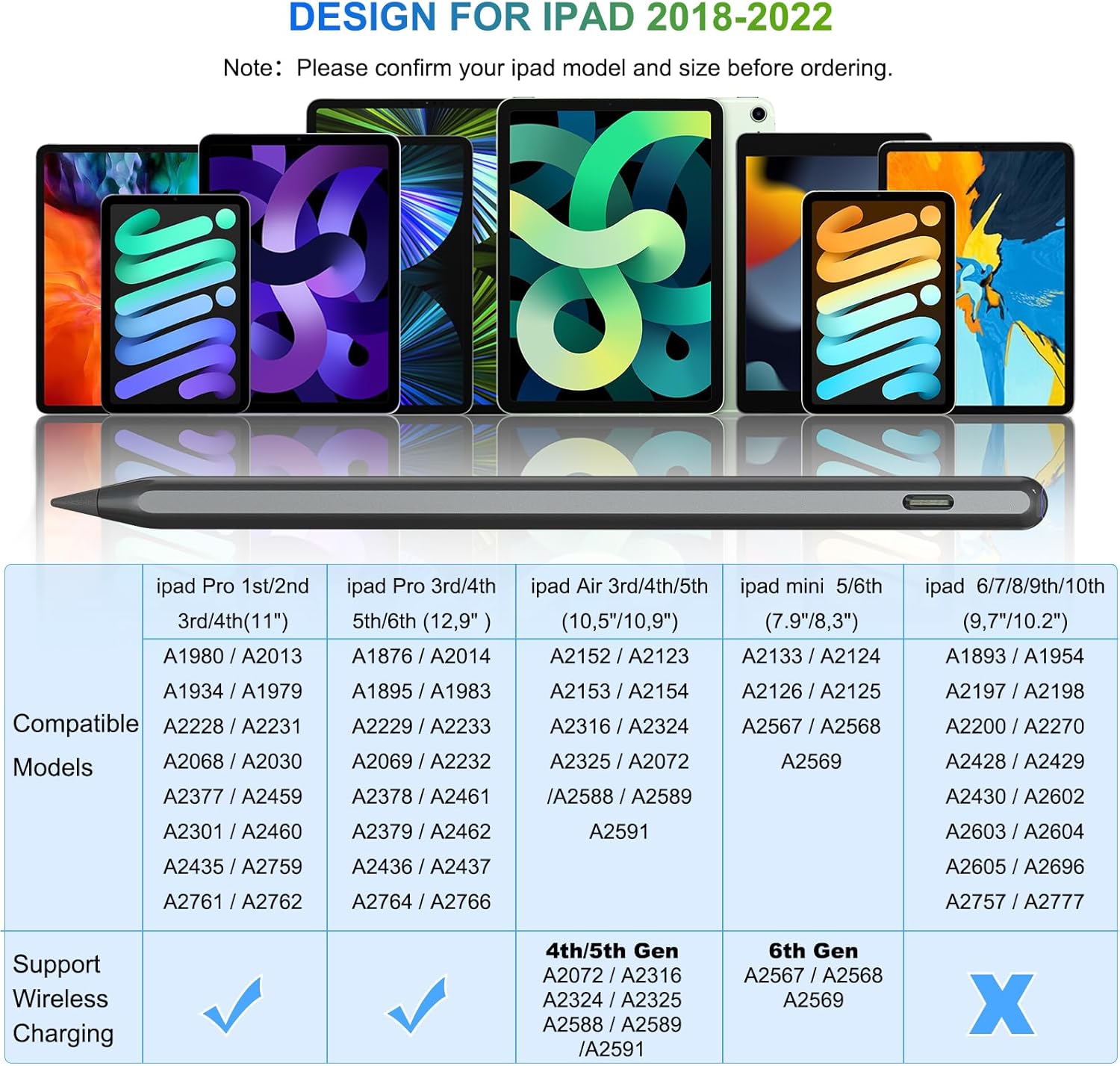 - DESIGN FOR IPAD 2018-2025 - This pencil for ipad is compatible with ipad 6/7/8/9/10/11 generation, ipad Air (M3/3/4/5 generation), ipad Mini (5/6 generation), ipad pro 11"/12.9", this is definitely the best alternative to the pencil 2nd generation. Note: magnetic charging is only for ipad Air 4/5, ipad Mini 6, ipad pro 11/12.9 inch available. If you do not know how to confirm the ipad model number, please contact us.
