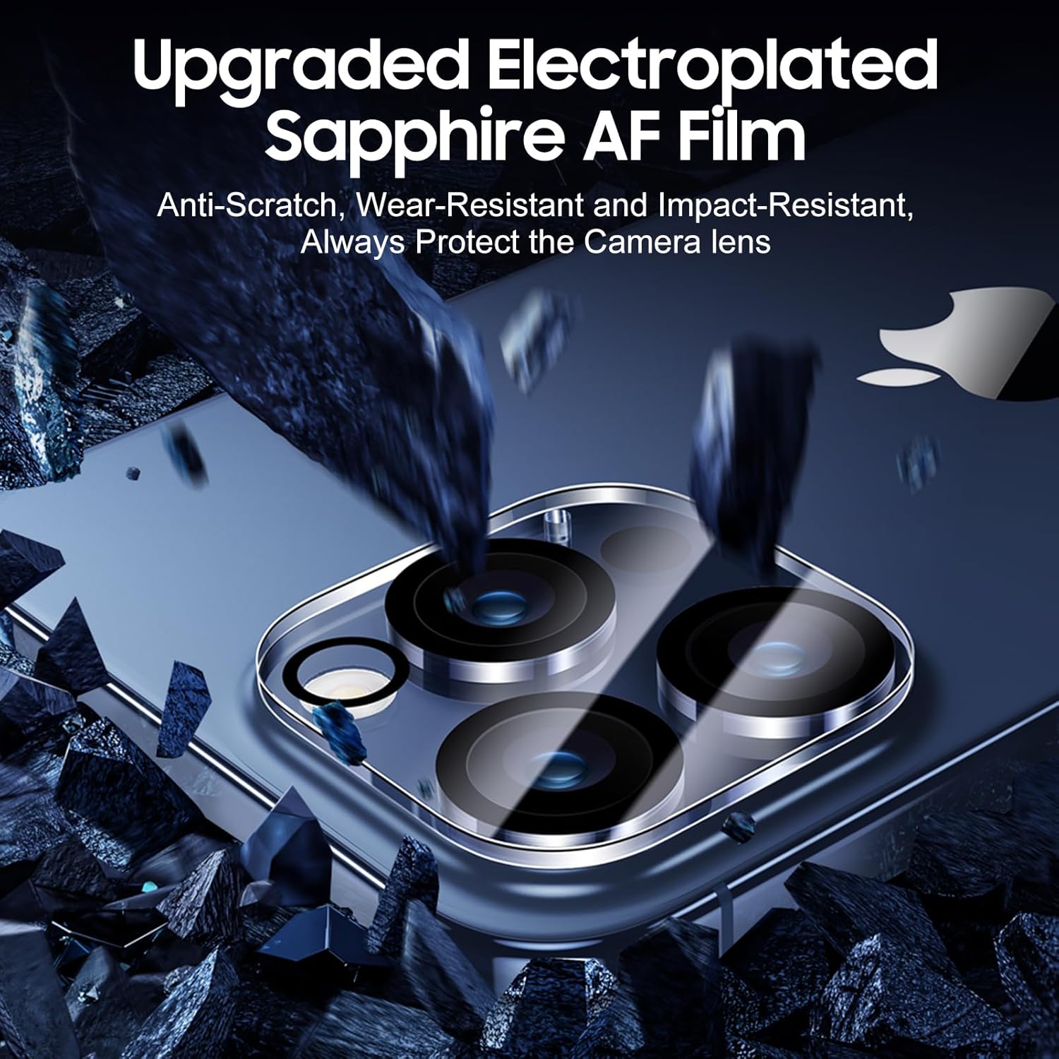 - 【4th Gen Upgraded Protection Design】UniqueMe iPhone 15 Pro / 15 Pro Max Camera Lens Protector has been designed to provide effective protection for the camera lens. It has been upgraded to its 4th-Generation integrated version with Anti-glare Aperture and an Electroplated Sapphire Super Hard AF film camera protector screen.