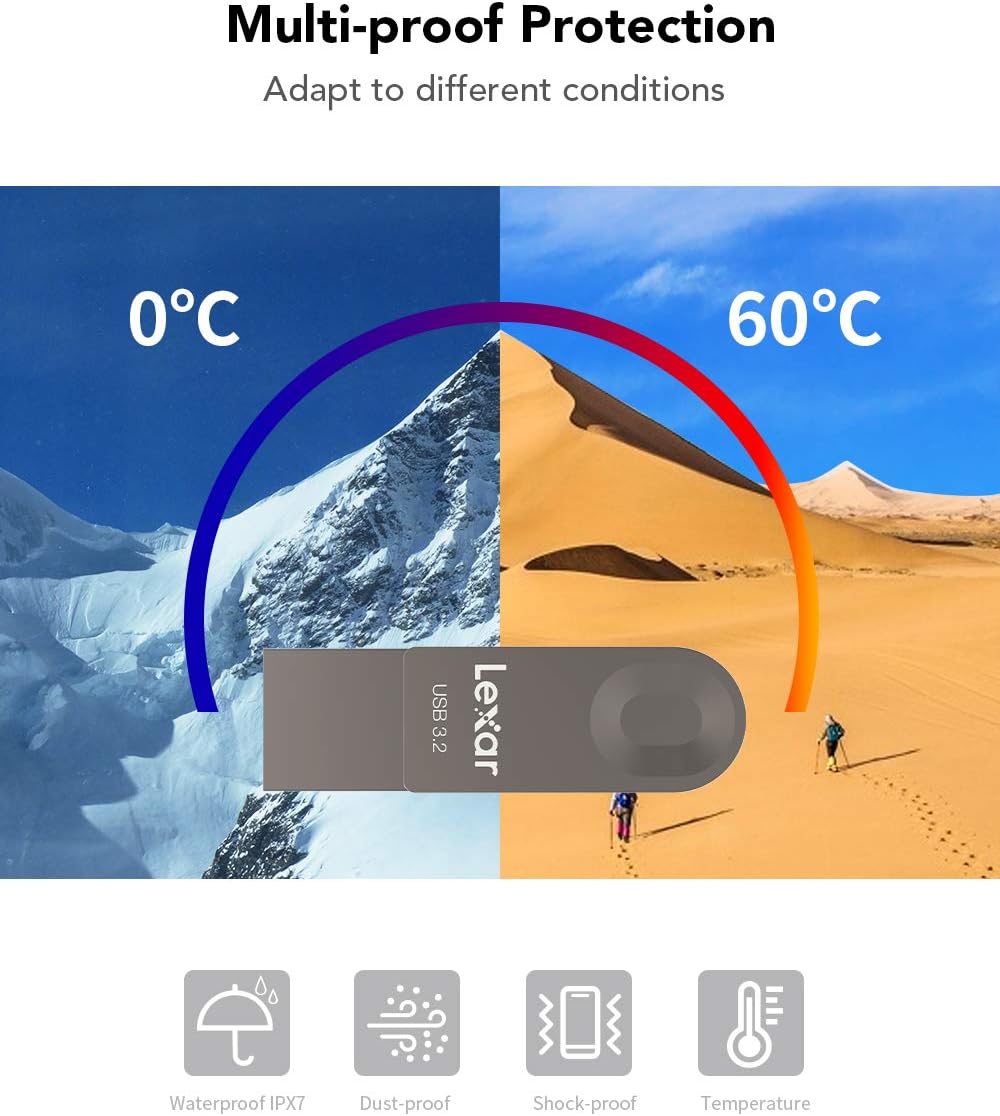 - Safe and Reliable – With Lexar owned international standard storage technology of shockproof, waterproof, temperature proof (operating range is between 0° C and 60° C and storage range is between -20° C and 85°C.), x-ray proof and magnetic proof, Lexar USB 3.2 Gen 1 Flash Drive constantly safeguards your personal data, and effectively prevents them loss. Lexar is the international brand that worth counting on.