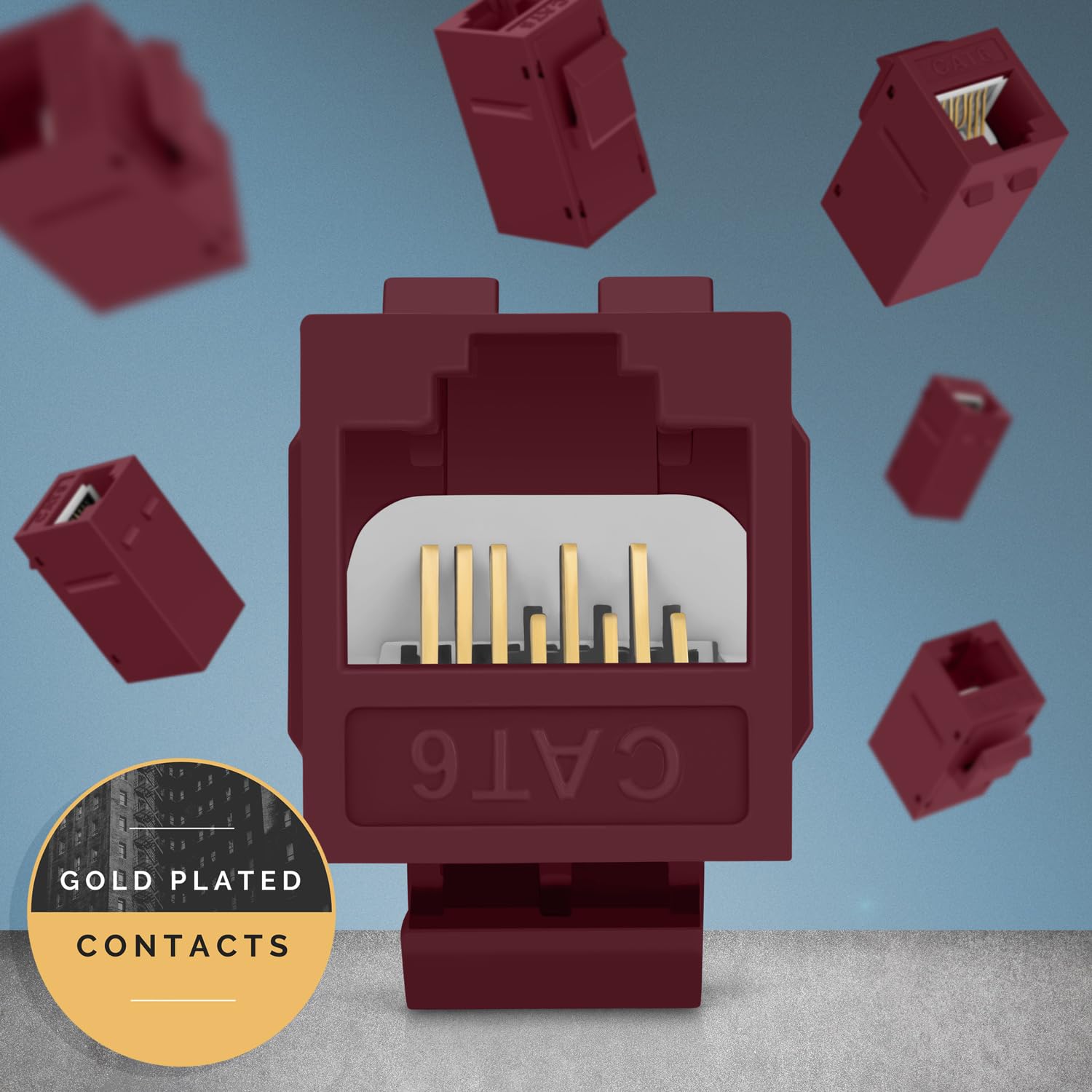 Everest Cat6 RJ45 Keystone Coupler (24-Pack) in Red - RJ45 Coupler - Cat 6 Couplers - Female to Female Cat6 Keystone Jacks - Ethernet Couplers - Ethernet Cable Extender