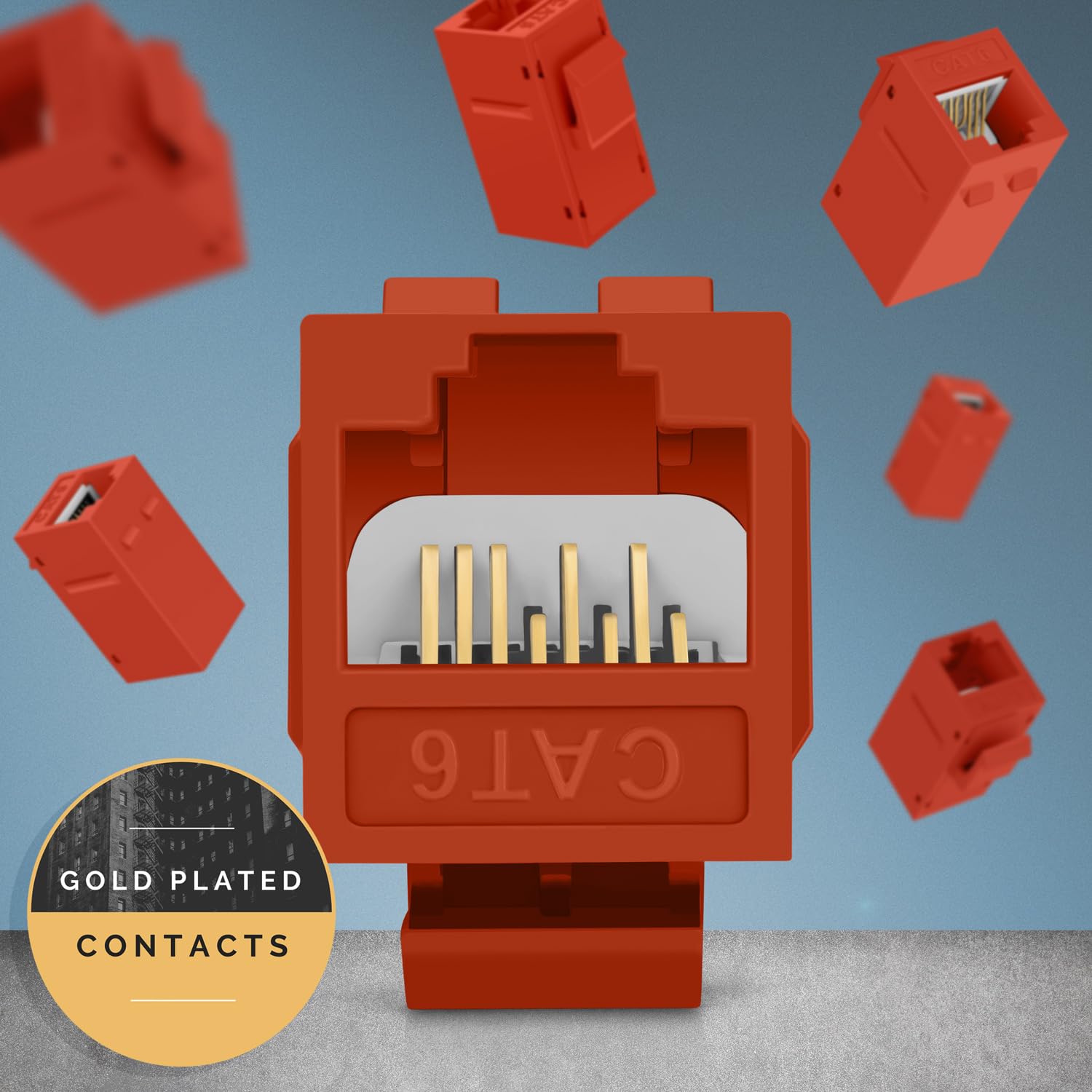 Everest RJ45 CAT6 Keystone Coupler in Orange (48-Pack) - RJ45 Coupler - Cat6 Keystone Jacks