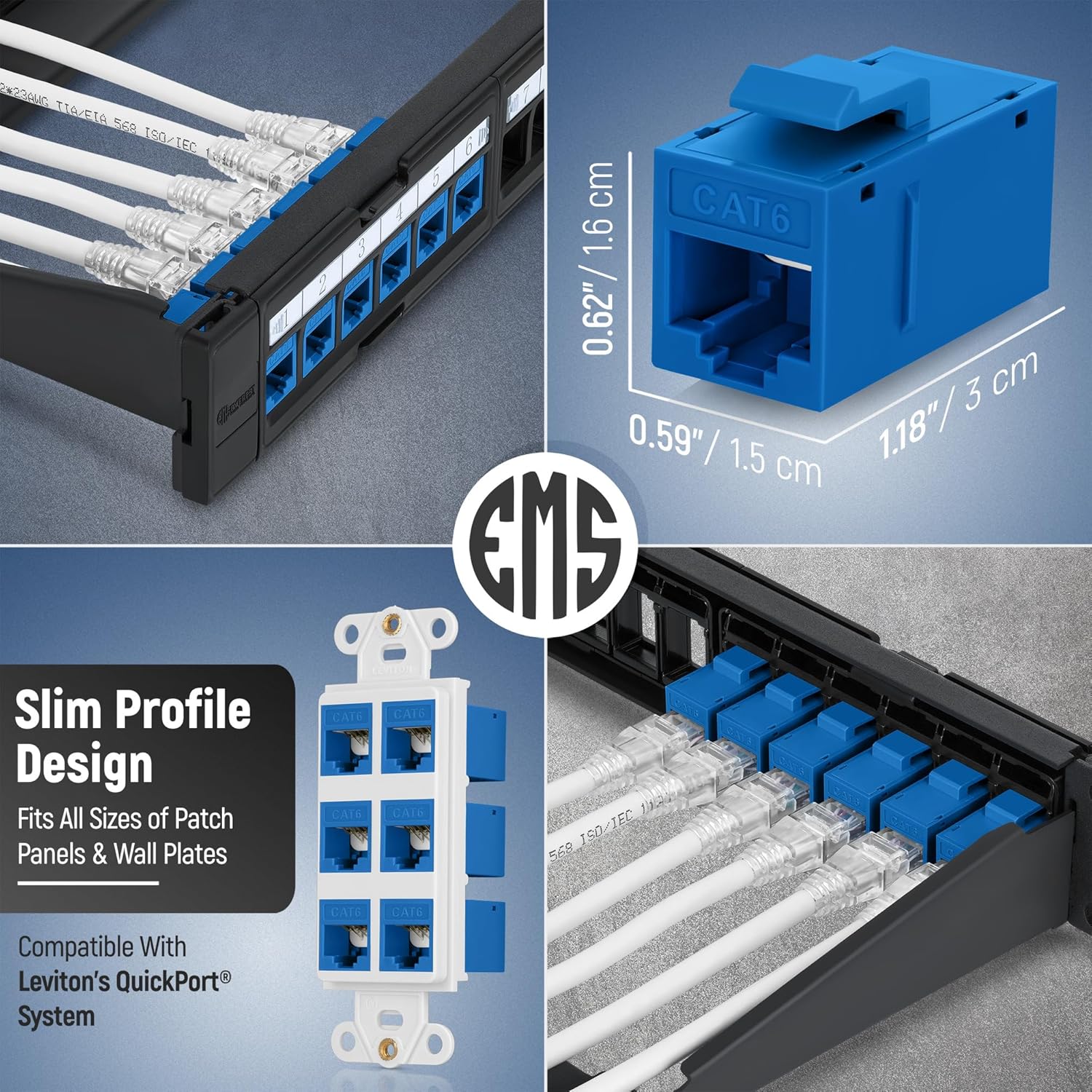 - Slim Size - Everest rj45 Keystone Coupler fits into standard sized keystone wall plates and blank keystone patch panels. Snaps smoothly into place and easy to pop out. It is a cat 6 keystone coupler but also compatible with cat5e ethernet cable