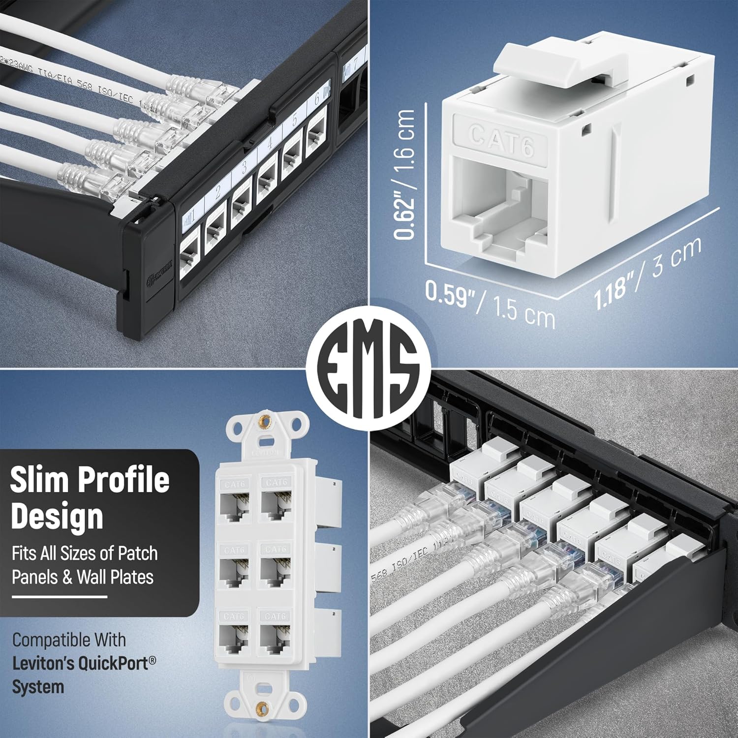 Everest 24-Pack Cat6 RJ45 Keystone Coupler - Female to Female - Cat 6, Cat5e Compatible - White