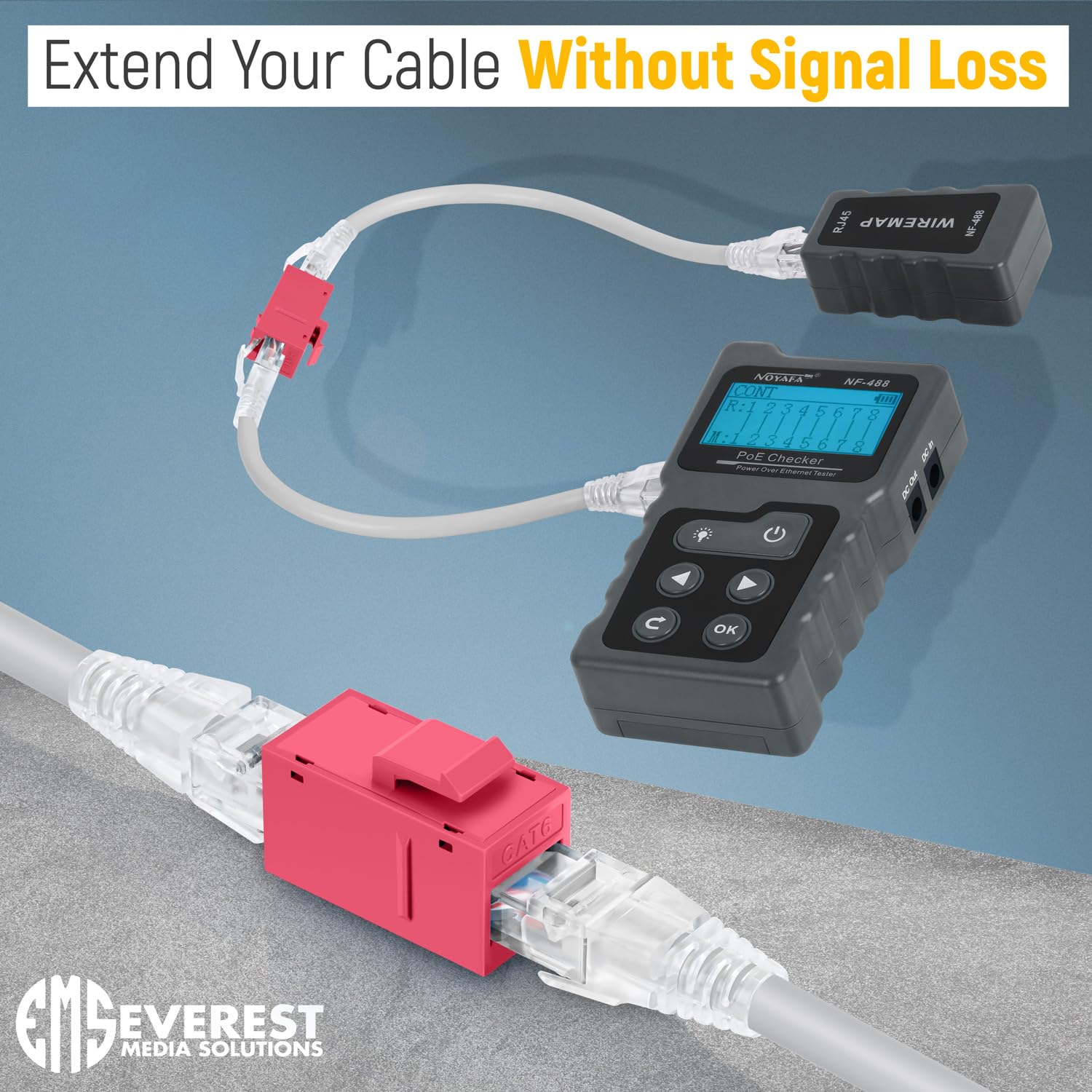 Everest Cat6 RJ45 Keystone Coupler (24-Pack) in Pink - RJ45 Coupler - Cat 6 Couplers - Female to Female Cat6 Keystone Jacks - Ethernet Couplers - Ethernet Cable Extender