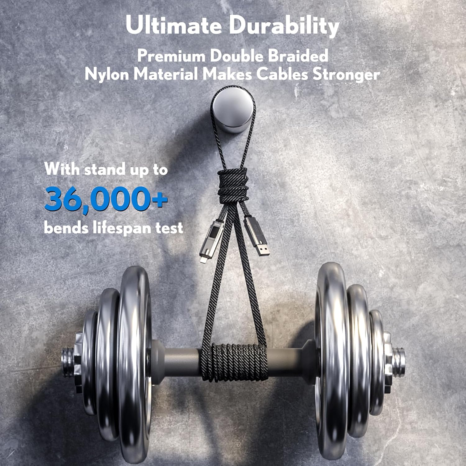 pzoz 4-in-1 USB C Fast Charging Cable with LED Display, Multi USBC Charger Combo Lightning/Type C/USB A Metal Ports for iPhone 16/15/14 Pro Max iPad MacBook AirPods Pro Samsung Google (60W, 5 ft)