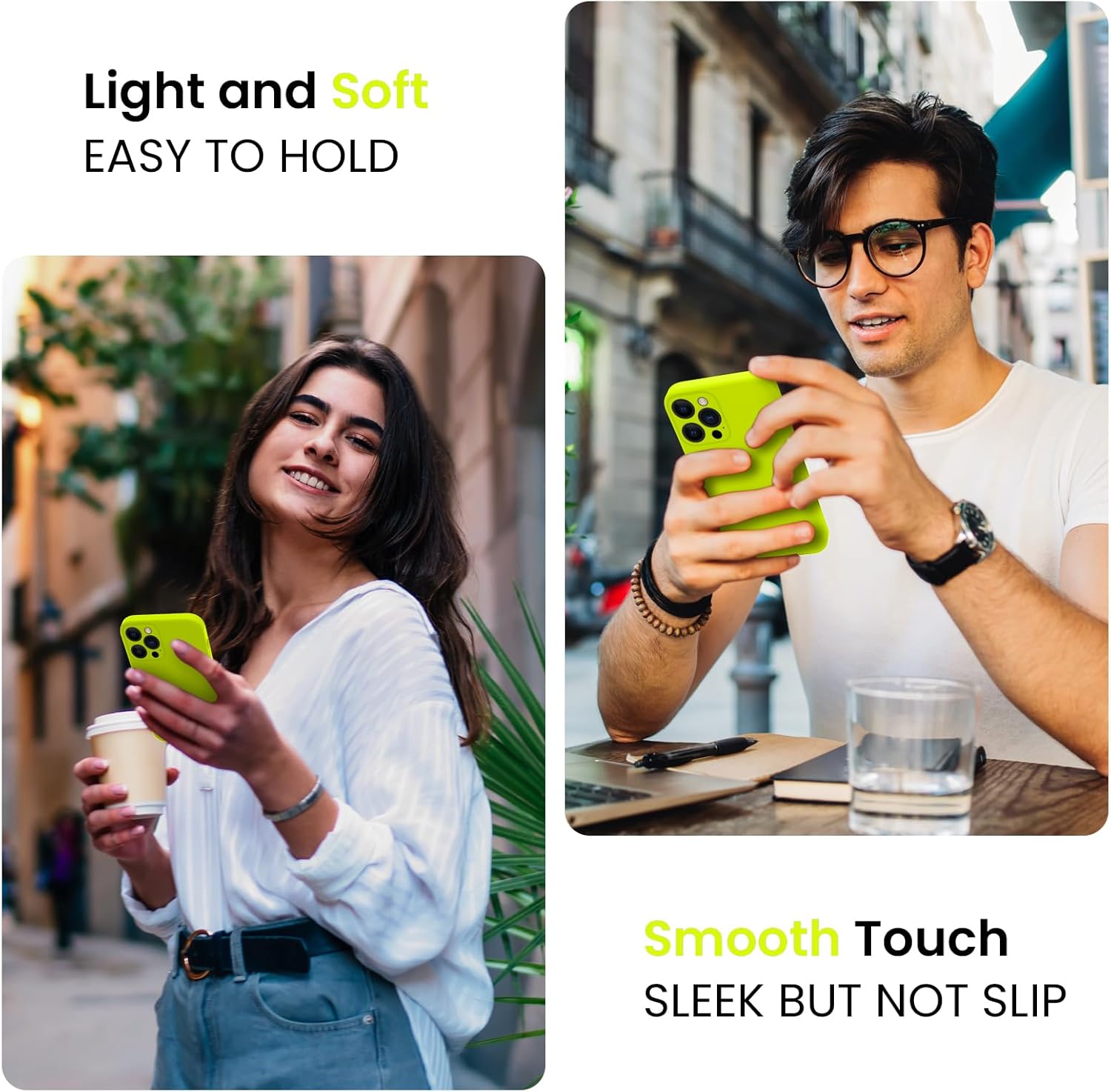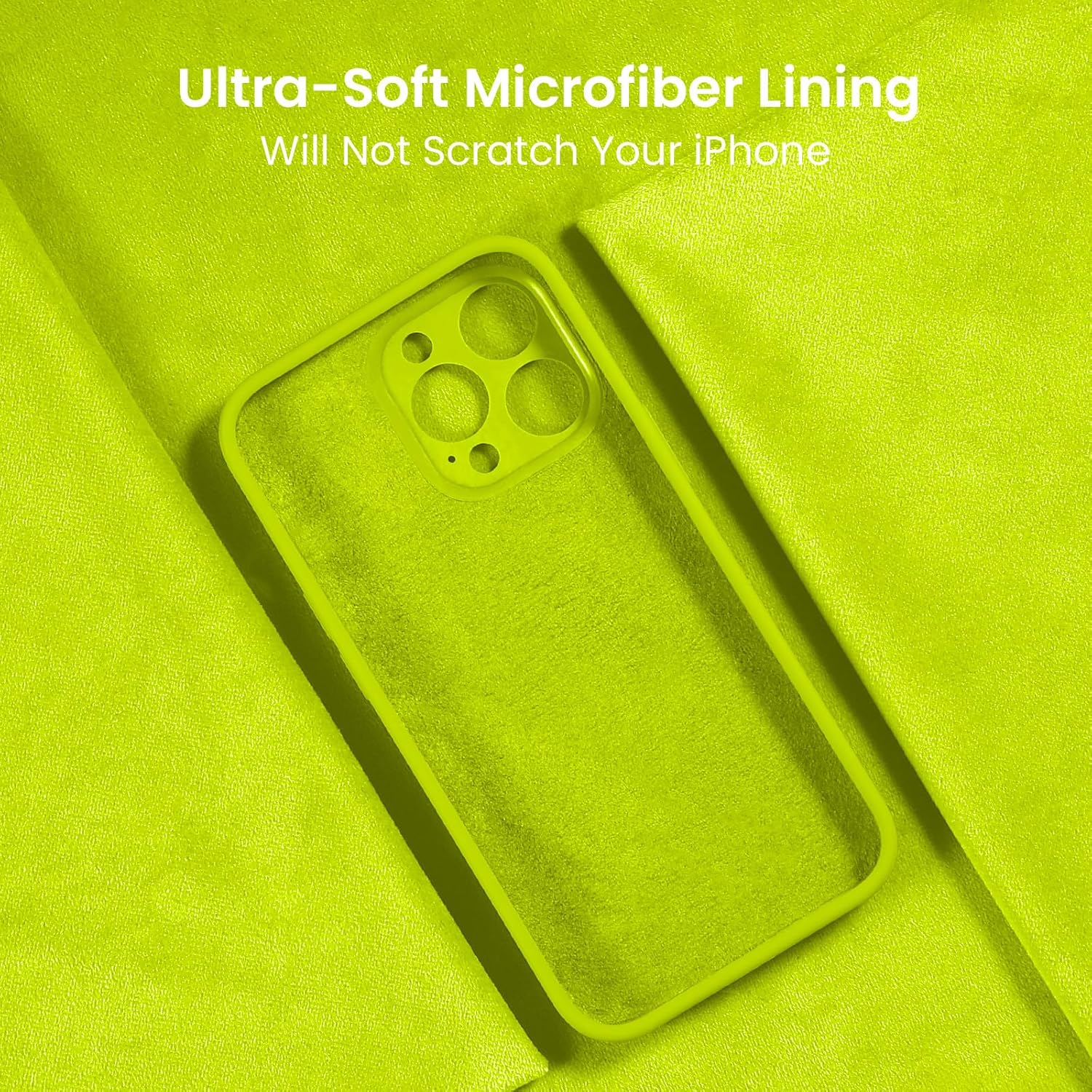 FireNova Designed for iPhone 15 Pro Max Case, Silicone Upgraded [Camera Protection] Phone Case with [2 Screen Protectors], Soft Anti-Scratch Microfiber Lining Inside, 6.7 inch, Fluorescent Green