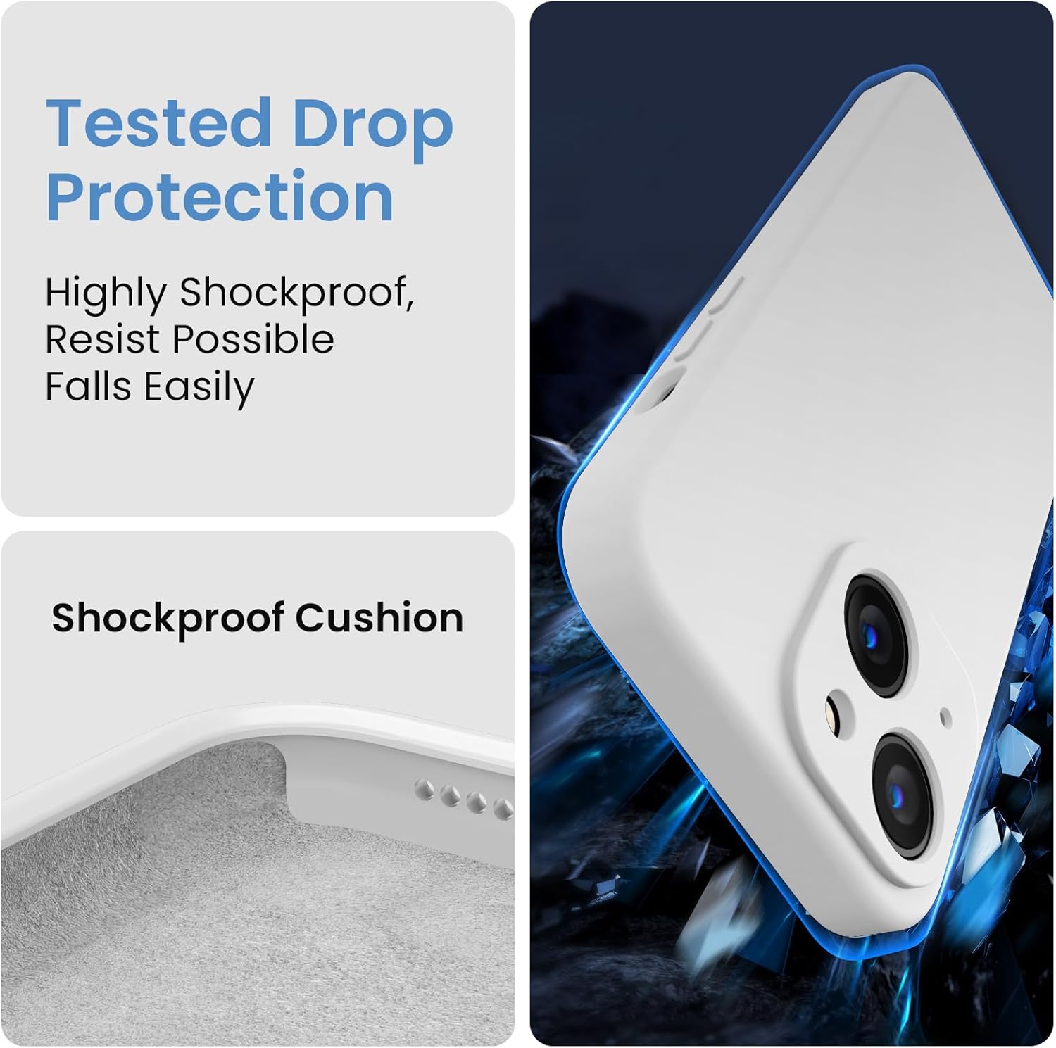 FireNova Designed for iPhone 15 Plus Case, Silicone [Camera Protection] Case with [2 Screen Protectors], Soft Anti-Scratch Microfiber Lining Inside, 6.7 inch, White