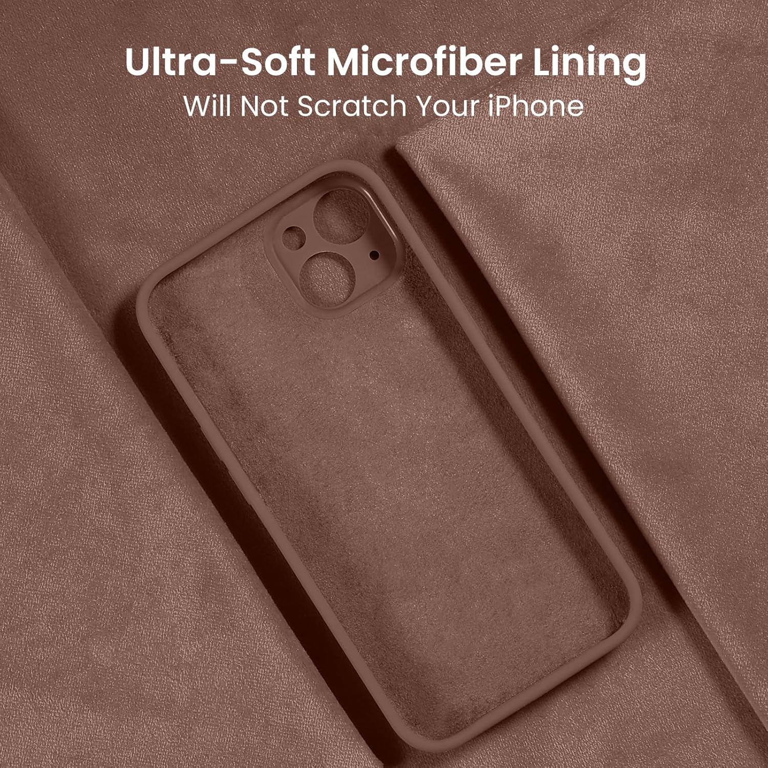 FireNova Designed for iPhone 15 Case, Silicone Upgraded [Camera Protection] Phone Case with [2 Screen Protectors], Soft Anti-Scratch Microfiber Lining Inside, 6.1 inch, Light Brown