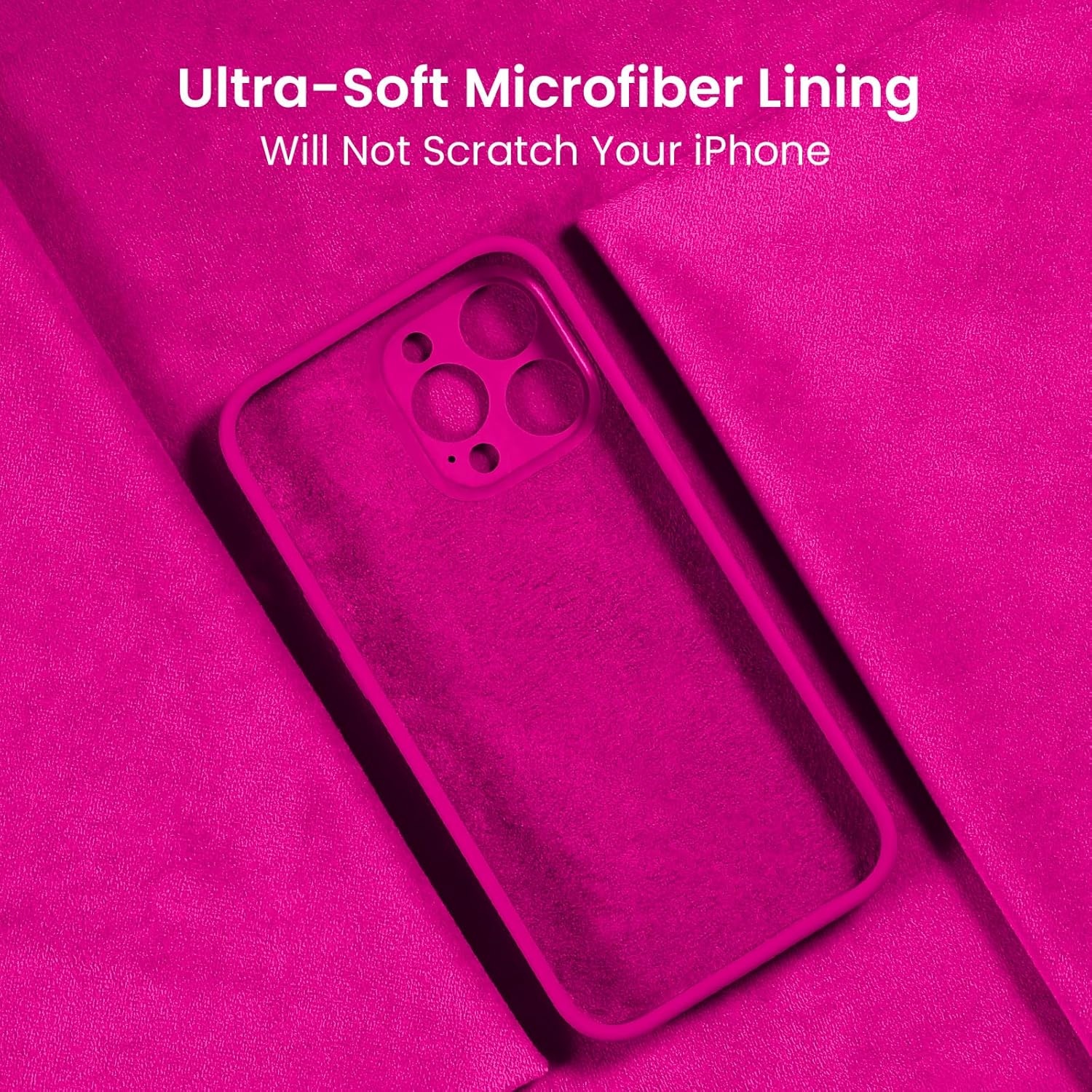 FireNova Designed for iPhone 15 Pro Max Case, Silicone Upgraded [Camera Protection] Phone Case with [2 Screen Protectors], Soft Anti-Scratch Microfiber Lining Inside, 6.7 inch, Hot Pink