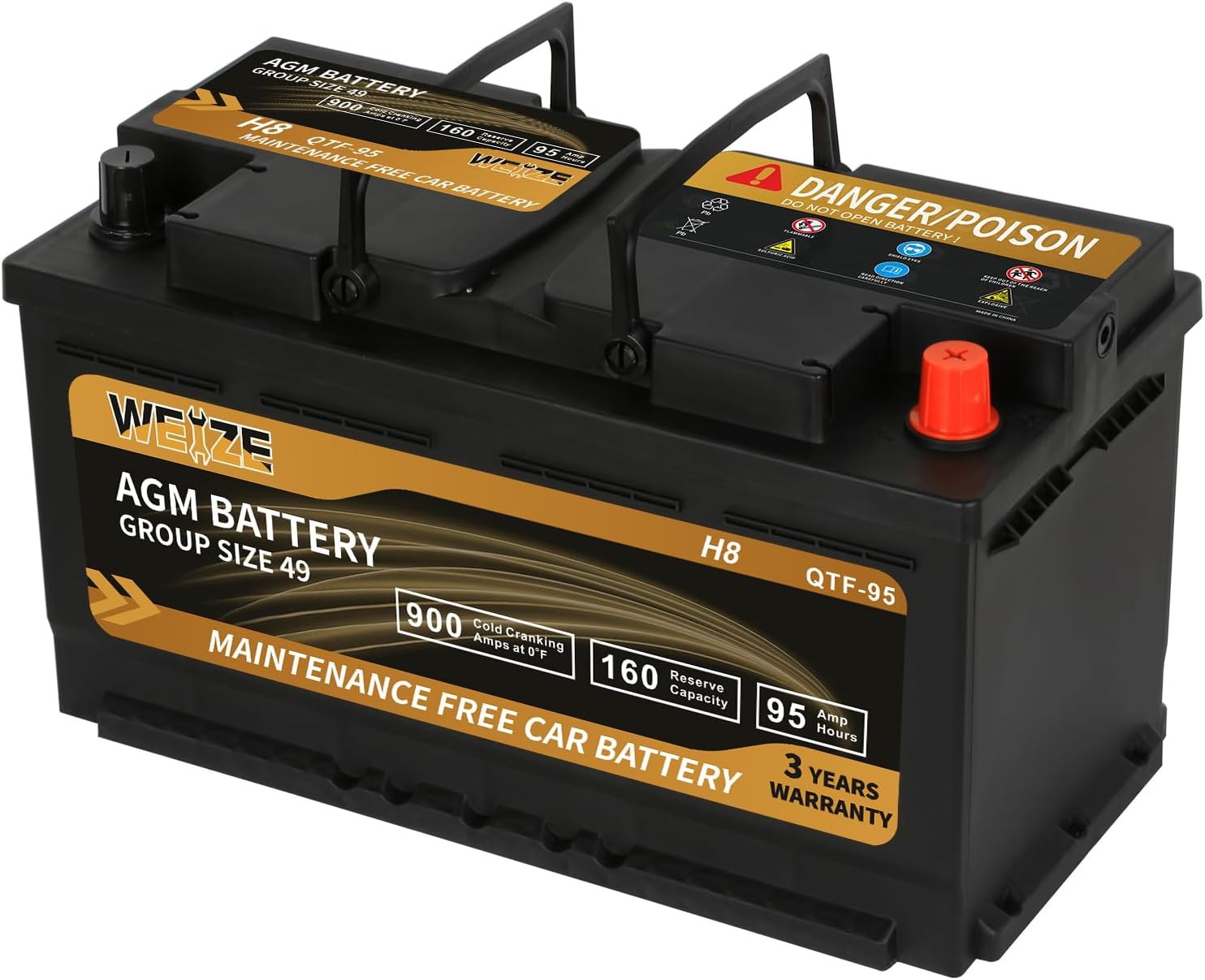 Weize Platinum AGM Battery BCI Group 49-12v 95ah H8 Size 49 Automotive Battery, 160RC, 900CCA, 36 Months Warranty, Dimensions 13.9" L x 6.89" W x 7.48" H
