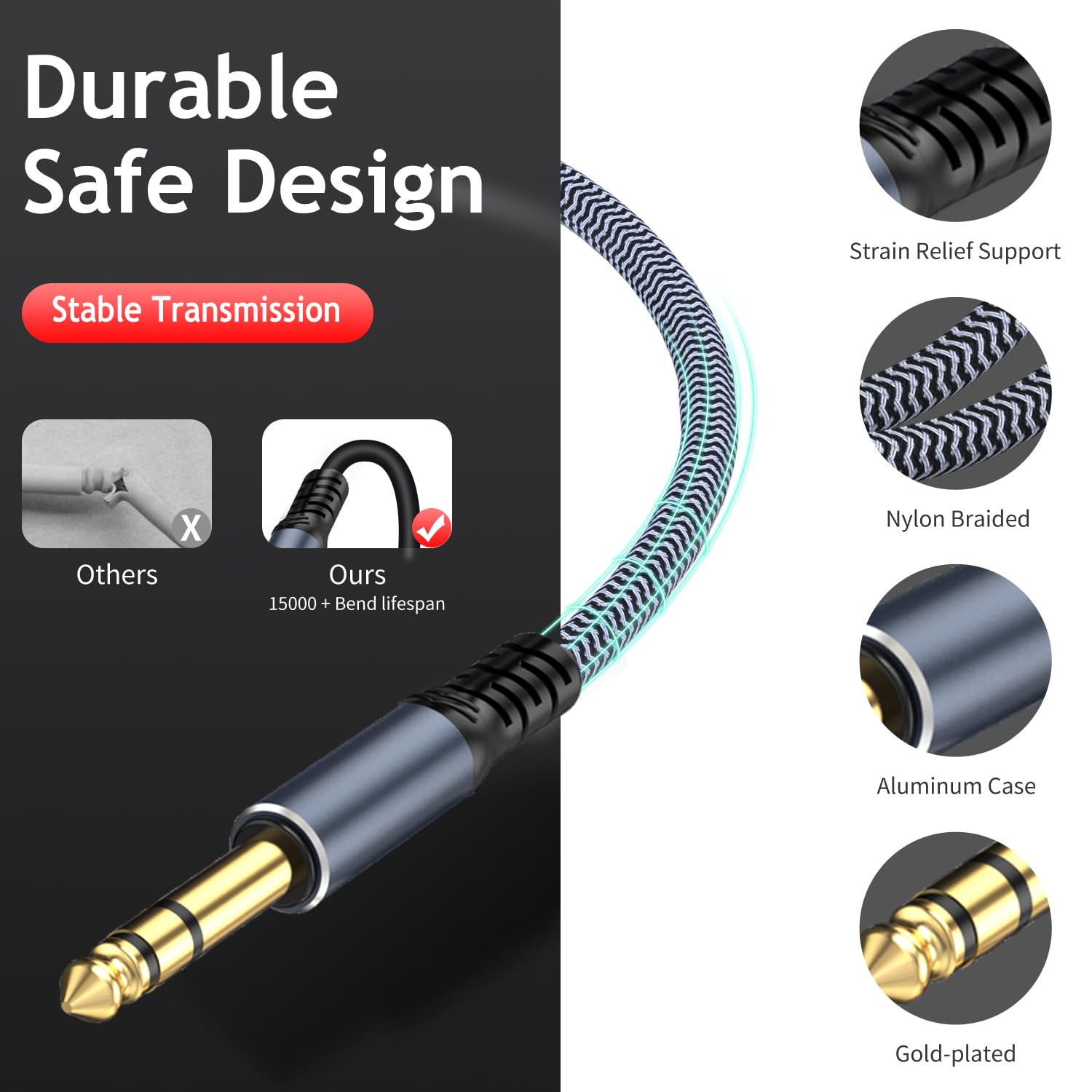 - ♫ TAiSUSAN quarter inch headphone extension cable, line diameter 4.8mm, use soft PVC protection and additional braided as jacket, tangle-free and service life is more longer.