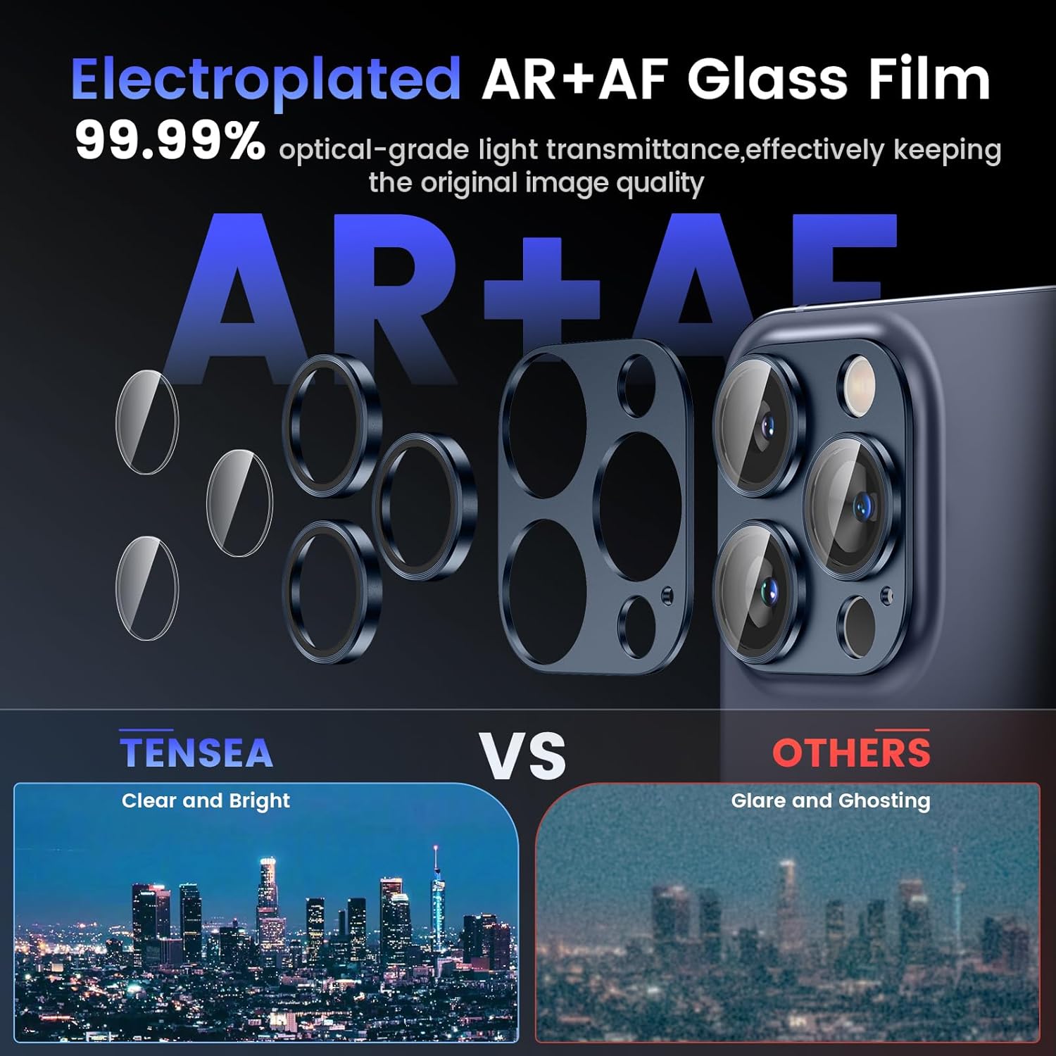 - Compatibility: Tensea rear camera protector made by 9H tempered glass and aluminum alloy is designed for iPhone 15 Pro 6.1 inch/iPhone 15 Pro Max 6.7 inch with THREE camera lens. The protector de camara full covers your phone lens