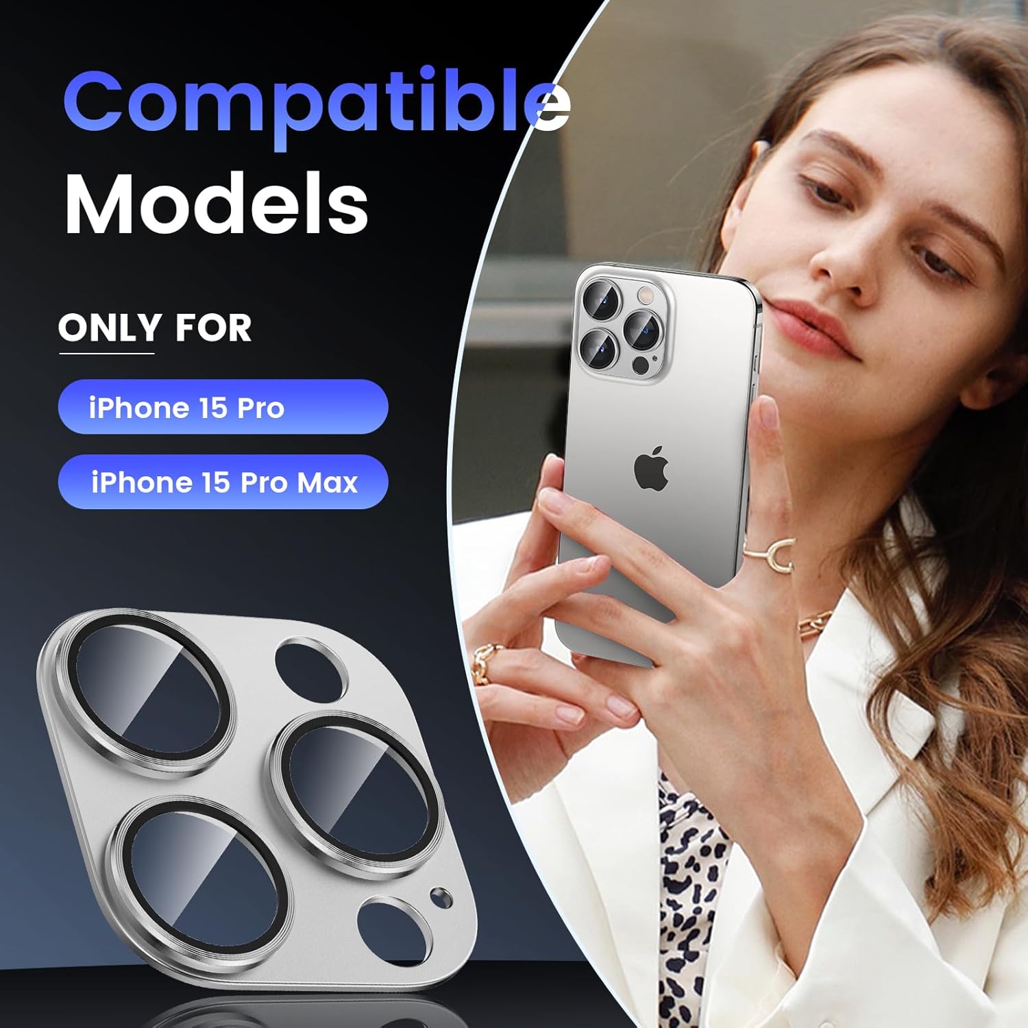 - Full Lens Coverage: The metal camera lens protective film effectively protects your i Phone 15 Pro/15 Pro Max from scratches, dust and abrasion. The built-in cushions of lens film can prevent shock, falling or big impact to your camera
