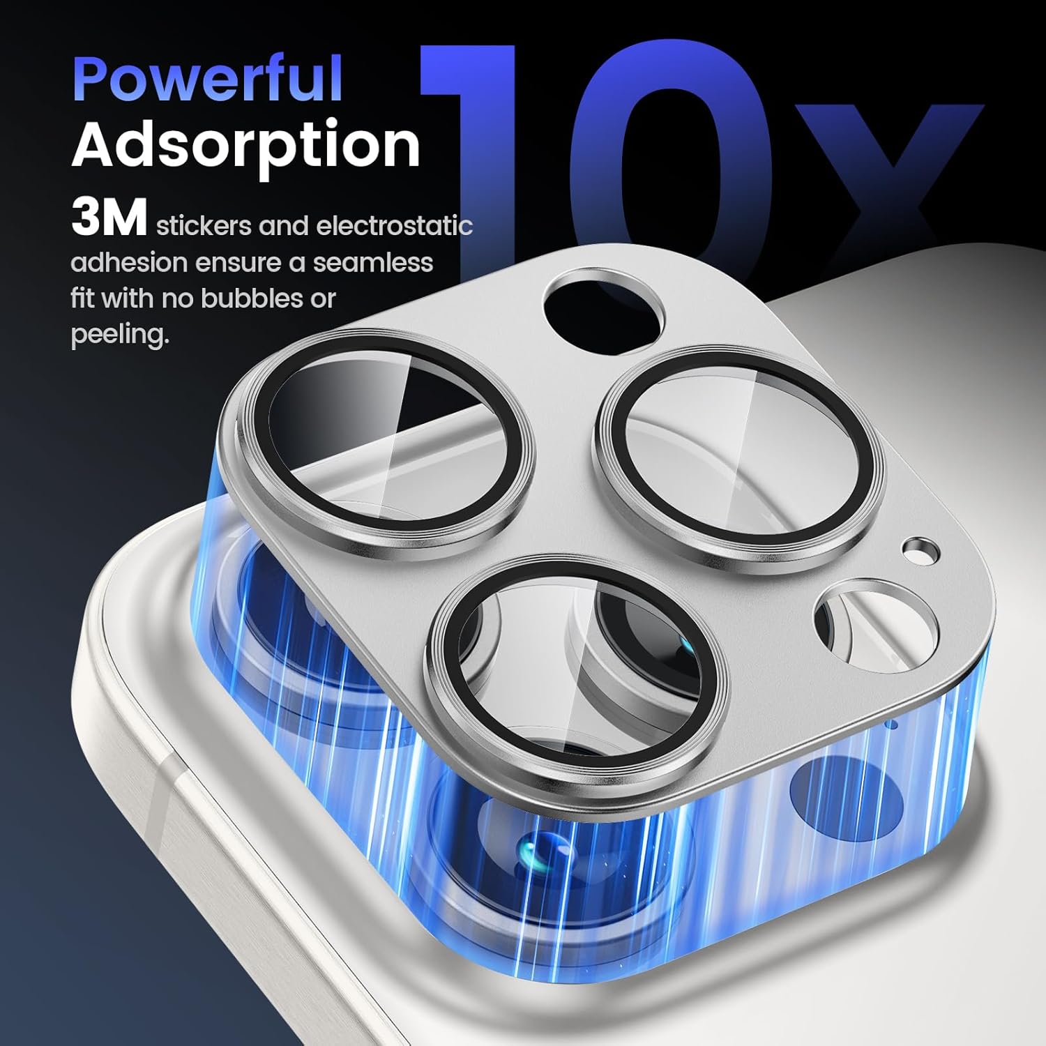 Tensea for iPhone 16 Pro/iPhone 16 Pro Max/iPhone 15 Pro/iPhone 15 Pro Max Camera Lens Protector, Metal Aluminum Alloy Tempered Glass Cover Camera Screen Protector Accessories, Case Friendly