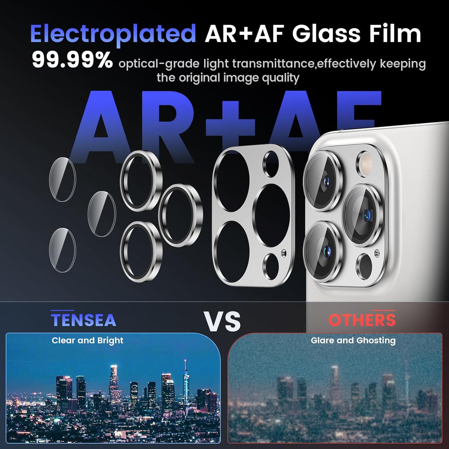 - Compatibility: Tensea rear camera protector made by 9H tempered glass and aluminum alloy is designed for iPhone 15 Pro 6.1 inch/iPhone 15 Pro Max 6.7 inch with THREE camera lens. The protector de camara full covers your phone lens
