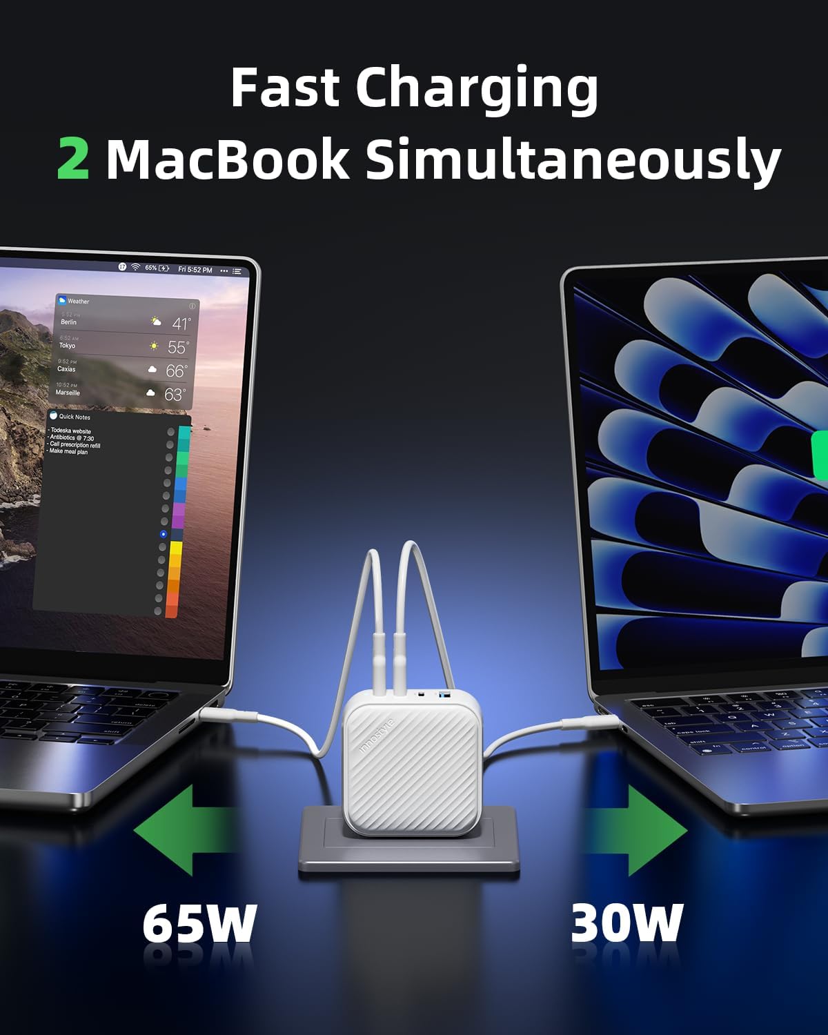 - Ultra-Fast 100W Charging Power: Our 4-port GaN wall charger can reach 100W power, enabling fast and efficient charging for your devices (such as iPhone, iPad, laptop, etc.). This 100W charger power supply can charge a MacBook Pro 14 to 51% in less than 30 minutes. Perfect for work, travel, and at home, keeping your devices fully charged anytime, anywhere