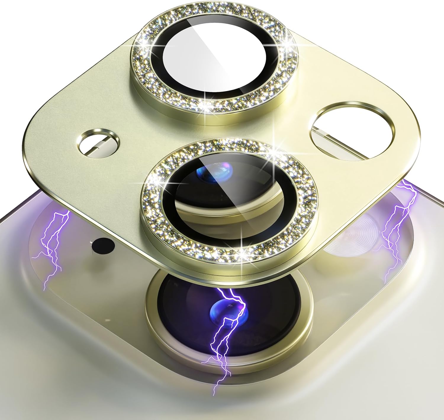 beuxece for iPhone 15/iPhone 15Plus Camera Lens Proprotector, Metal Camera Screen Proprotector Cover Accessories, Case Friendly, HD Tempered Glass,Drop Protection, Easy to Install,Yellow