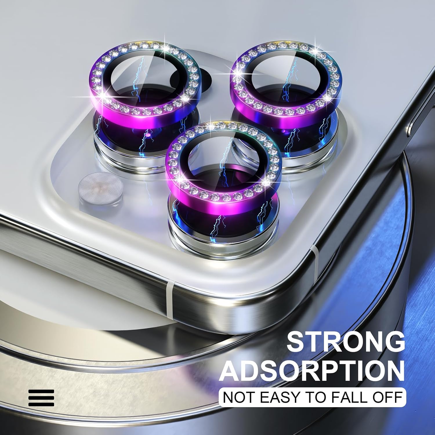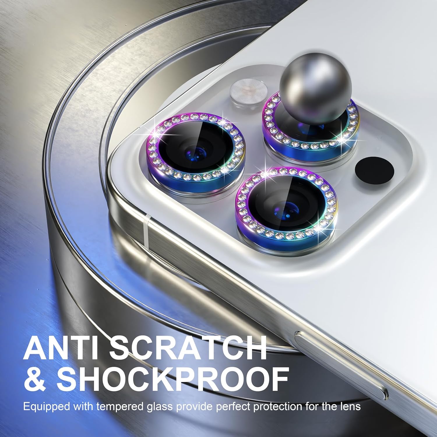 - Personalized Decoration: Made of high-quality aviation aluminum metal ring and 9H tempered glass and inlaid with bling rhinestones to give your 16 Pro/Pro Max camera lens a diamond gorgeous appearance, shining in the sun, very eye-catching and complimentary.