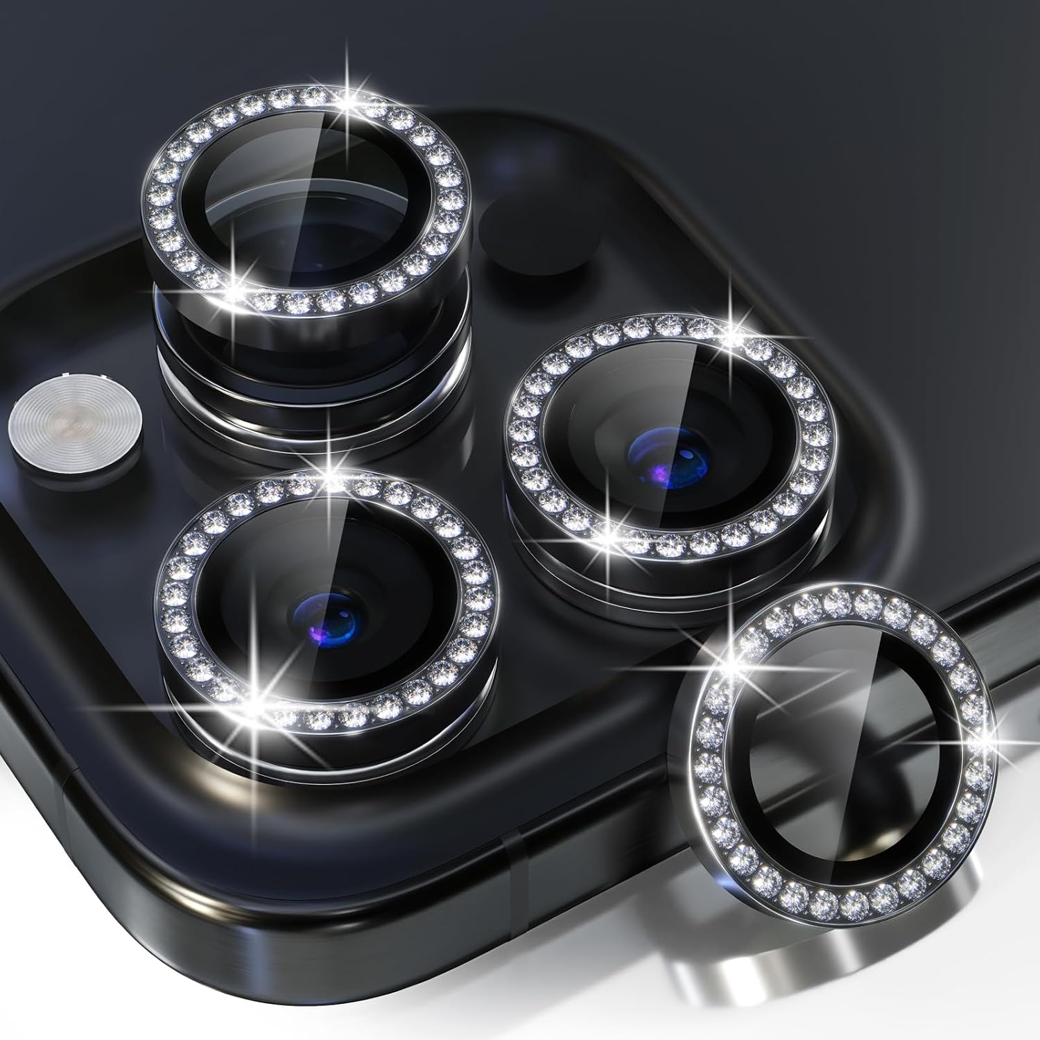 - Personalized Decoration: Made of high-quality aviation aluminum metal ring and 9H tempered glass and inlaid with bling rhinestones to give your 16 Pro/Pro Max camera lens a diamond gorgeous appearance, shining in the sun, very eye-catching and complimentary.