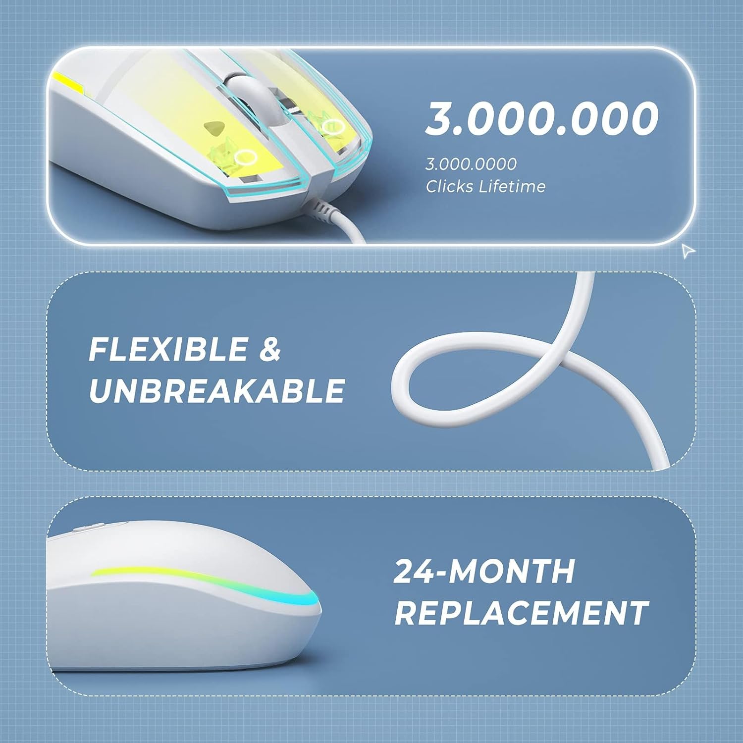 Seenda Wired RGB Backlit Optical LED Mouse - USB Cord for Laptops, Notebooks, Chromebook (White)