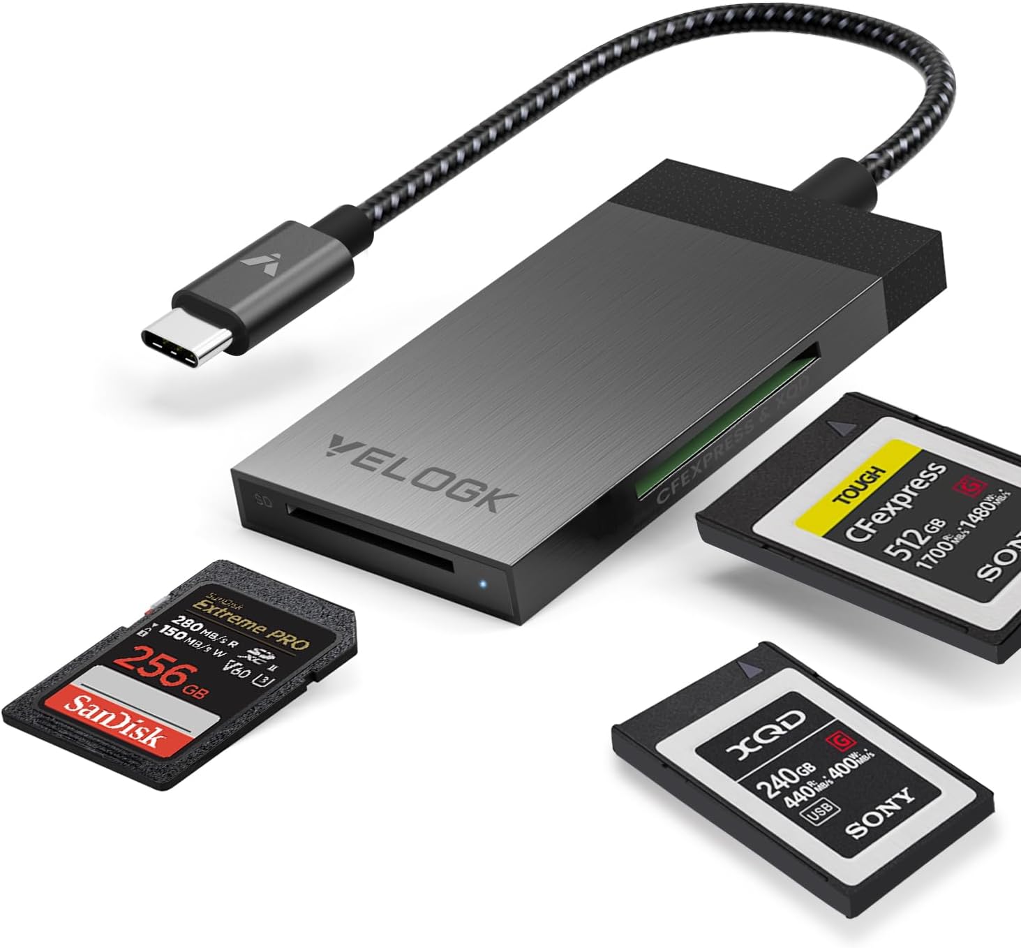 3-in-1 CFexpress/XQD/SD 4.0 UHS-II Card Reader USB C, VELOGK Dual-Slot USB 3.2(10Gbps) CFexpress Type B Card Reader Adapter for Android/Windows/Mac OS/Linux, with Brushed Aluminum Case&Portable Pouch